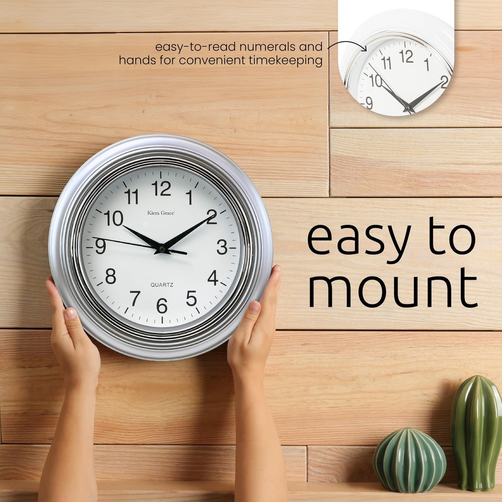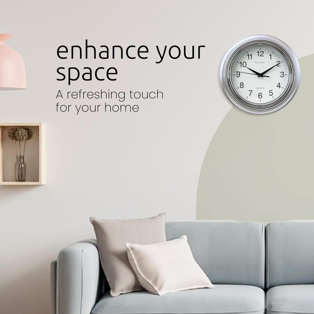 1. This clock looks way more expensive than it is! The sleek silver finish fits perfectly in my living room, and the silent movement is a game-changer. Easy to read and install—absolutely love it.