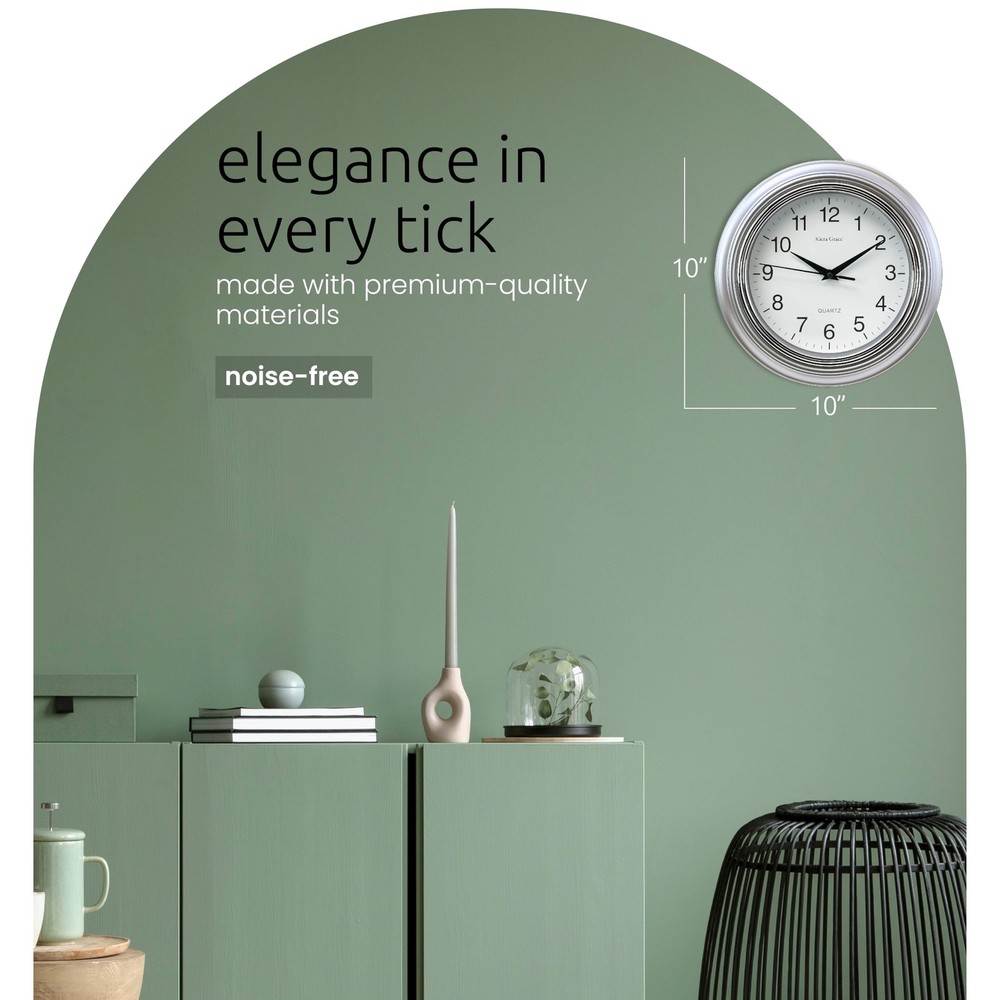 Aster Silver 10 Inch Modern Classic Battery Operated Wall Clock
