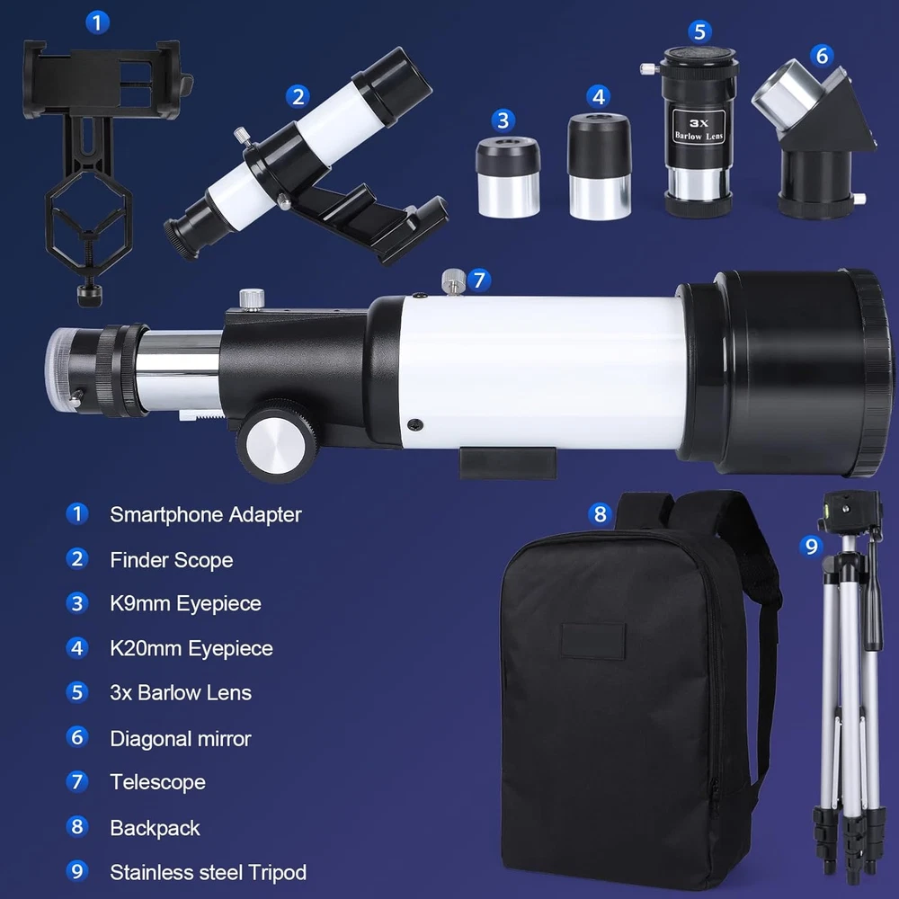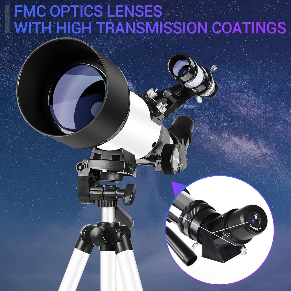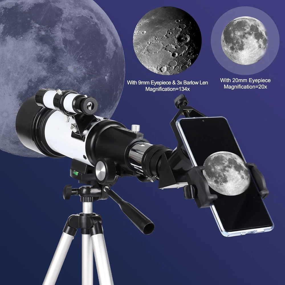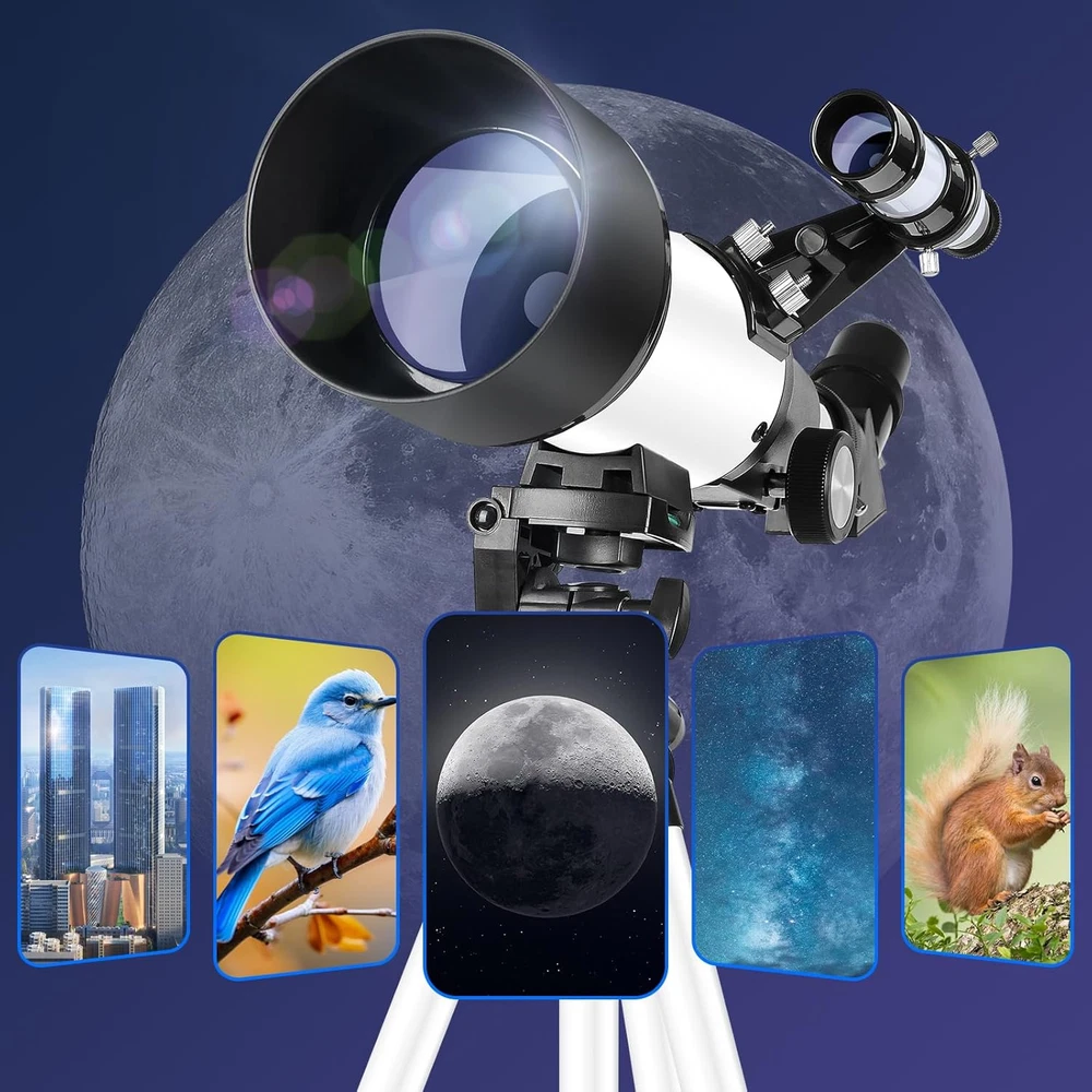 Store New Arrivals Add to Favorite View Feedback Contact Astronomical Telescope for Adults and Kids - 70Mm Aperture 400Mm High Powered Telescope for Astronomy Beginners - FMC Lens Travel Portable Telescope with Phone Adapter Description Item Dimensions D x W x H 17.13"D x 11.42"W x 5.51"H Product Dimensions 17.13"D x 11.42"W x 5.51"H Manufacturer -40070 【Clear Imaging with Fully Multi-Coated Optics】With a focal length of 400mm and a 70mm aperture, this optical telescope from features high-resolution multi-coated lenses that provide excellent light transmission for crystal-clear and immersive viewing experiences. The telescope also comes with a finder scope, making it easier for beginners to locate and observe celestial objects. 【Adjustable and Sturdy Tripod】Our telescope is equipped with a lightweight yet sturdy aluminum alloy tripod that can be adjusted from 16.5 inches to 49.6 inches. The tripod features anti-slip design and provides stability for adults, beginners, and even kids. 【Quick Setup and Focusing】The high-powered telescope is designed for easy and quick installation without the need for additional tools. It is particularly beginner-friendly, featuring a focusing mechanism with adjustable tension for precise focusing. 【Universal Smartphone Adapter】This travel telescope comes with a universal smartphone adapter that allows you to capture photos and videos with your phone. It is compatible with binoculars, monoculars, spotting scopes, and more, making it a versatile tool for astrophotography and documentation. 【Versatile and Portable】The refractor telescope is not only ideal for observing the moon and bright planets but also suitable for daytime wildlife observation. It comes with 1.25" telescope eyepieces (K20mm, K9mm) and a 3x Barlow lens to meet all your viewing needs. Additionally, the telescope is accompanied by a convenient backpack to carry all the accessories, making it easier to take on your adventures. Experience the wonders of the universe with the deesoo Telescope for Adults. This high-powered telescope is designed to cater to the needs of astronomy enthusiasts. Featuring a generous 70mm aperture and a 400mm focal length, this telescope delivers bright, clear, and high-contrast images, allowing you to explore the mysteries of the night sky with precision. With two interchangeable eyepieces and a 3x Barlow lens, the telescope offers a range of magnification options to suit your observing needs. Whether you're gazing at stars and the moon at night or observing planets during the day, the deesoo telescope is the perfect companion for both children and adults, as well as beginner astronomers. The telescope is accompanied by a stable and adjustable aluminum alloy tripod, allowing you to set up your observation base in various locations with ease. It also provides a convenient bag for travel and storage. Additionally, the telescope comes with a phone adapter, enabling you to capture incredible images and videos of your astronomical discoveries. Share your findings with friends and family, or simply preserve them as cherished memories. At deesoo, we are committed to providing satisfying service. Should you have any questions or require assistance, our team is ready to assist you. Embark on your astronomical journey with confidence and discover the wonders of the universe with the deesoo Telescope for Adults. ABOUT US We offer the best prices around on high quality products. Our E-store includes media such as books, movies, music and games while offering electronics, toys, sporting apparel, clothing, tools, general home, garden items and more. SHIPPING We are always working hard to ensure your package arrives as soon as possible. Please understand that some factors like weather, high postal traffic, and the performance of shipping companies are outside of our control. We offer free shipping to the lower 48 states and ship within 2 business days of payment, usually sooner. We do not accept P.O. Boxes. Please provide a physical address. For shipping outside of the continental USA, we only use eBay's Global Shipping Program.The item is shipped to KY and then sent to the rest of the world. International customers are responsible for all duties and taxes. Continue to check out in order to calculate costs for shipping the item to your country. Messages regarding eBay's Global Shipping Program MUST be directed at eBay EXCLUSIVELY. RETURNS We offer a 30-Day Return Policy on items which you are not completely satisfied with. You have the option for a full-refund or an exchange of the item. No returns are available on items shipped outside of the USA. PAYMENT We accept PayPal. CONTACT US This page content is yet to come Please ad us to your favorite seller and visit again later Thank You CUSTOMER SATISFACTION We try our very best to make sure every customer is completely satisfied. If there's a problem, message us! We're happy to help. WE ACCEPT Copyright © 2021 AutoDS. | All Rights Reserved