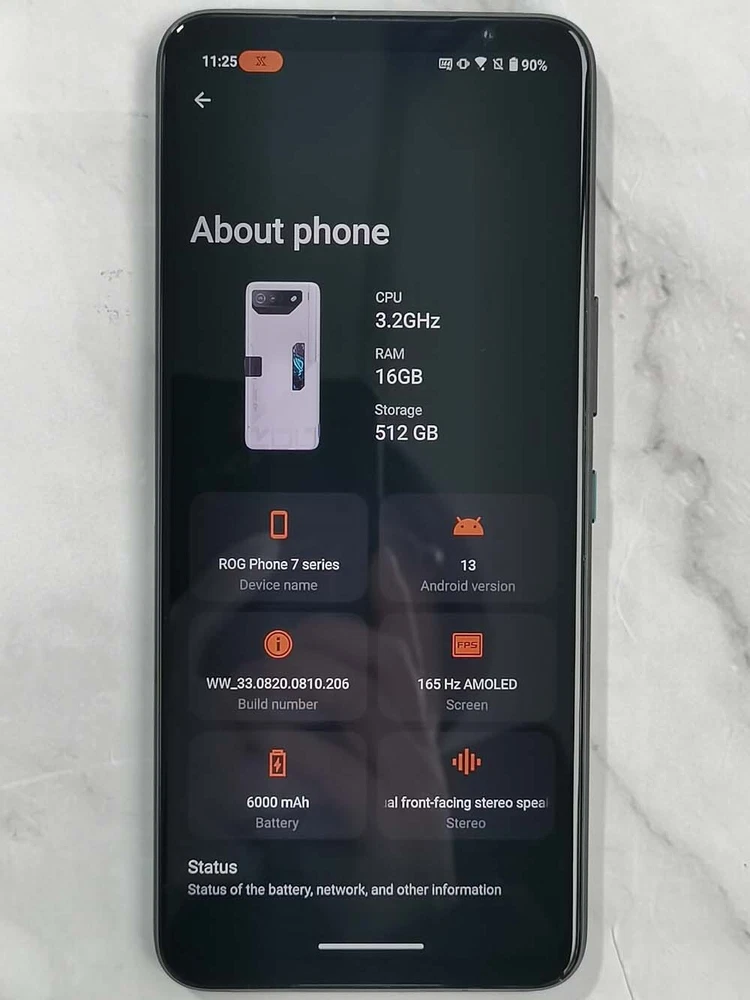 Asus ROG Pho ne 7 Pro Packag e c ont ain :1*Smartphone,1*Charger,1* USB Cable About : Dual SIM Slots: Supports dual SIM cards for convenience 5G Compatible: Works on 5G networks for faster speeds Large Storage: Comes with 512GB of storage and 16GB of RAM Samsung AMOLED Display: Features a 6.78-inch 20.4:9 (2448 x 1080) Samsung AMOLED display Snapdragon 8 Gen2 Processor: Equipped with a powerful 3.2 GHz Octa-Core Snapdragon 8 Gen2 processor 50MP Main Camera: Comes with a 50MP main rear camera that captures stunning photos Long Battery Life: Features a large 6000mAh battery for extended usage Water Resistant Design: Withstands splashes and spills for worry-free use