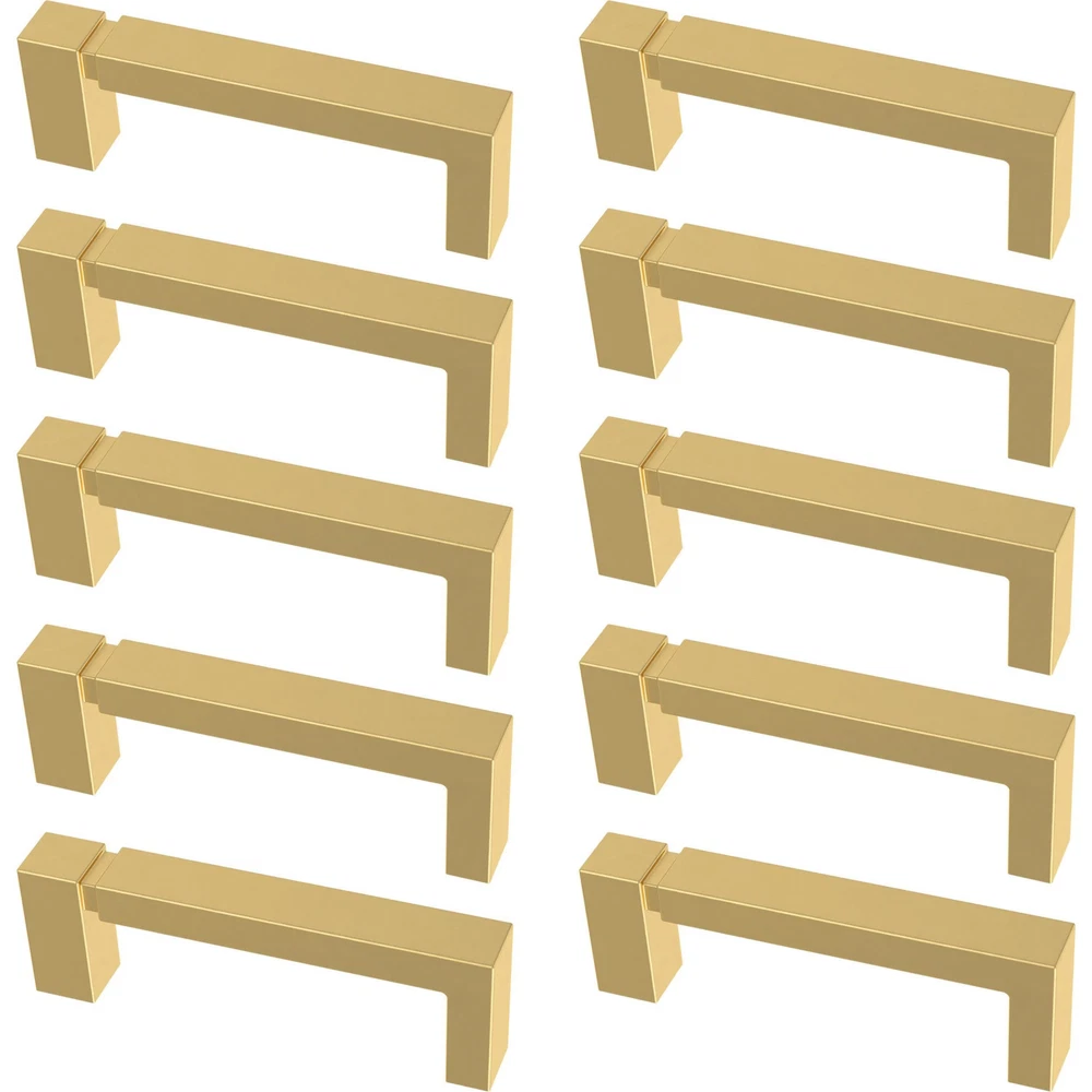 The Asymmetric Notched cabinet pull collection makes it easy to give an updated look to your kitchen, bathroom, office, or furniture. The Modern cabinet handle design makes it the perfect addition to your cabinets, desk, and even dresser drawers. Available in multiple finishes and pack sizes to fit any home decor project and cabinet hardware style. STYLE: Easily update your kitchen and bathroom cabinets or furniture with our modern cabinet hardware collection. MATERIAL: Our brushed brass finish provides a complimentary tone to the metal handles. SIZING: The collection of drawer pulls measures 3 (76mm) center-to-center and comes in a pack of 10, so you can make your cabinet upgrades in bulk. DURABLE: We work with highly durable materials to ensure your cabinets and drawers are equipped with top quality hardware that will last for years. EASE OF USE: Our asymmetric notched cabinet pulls are specially designed for easy installation and use.