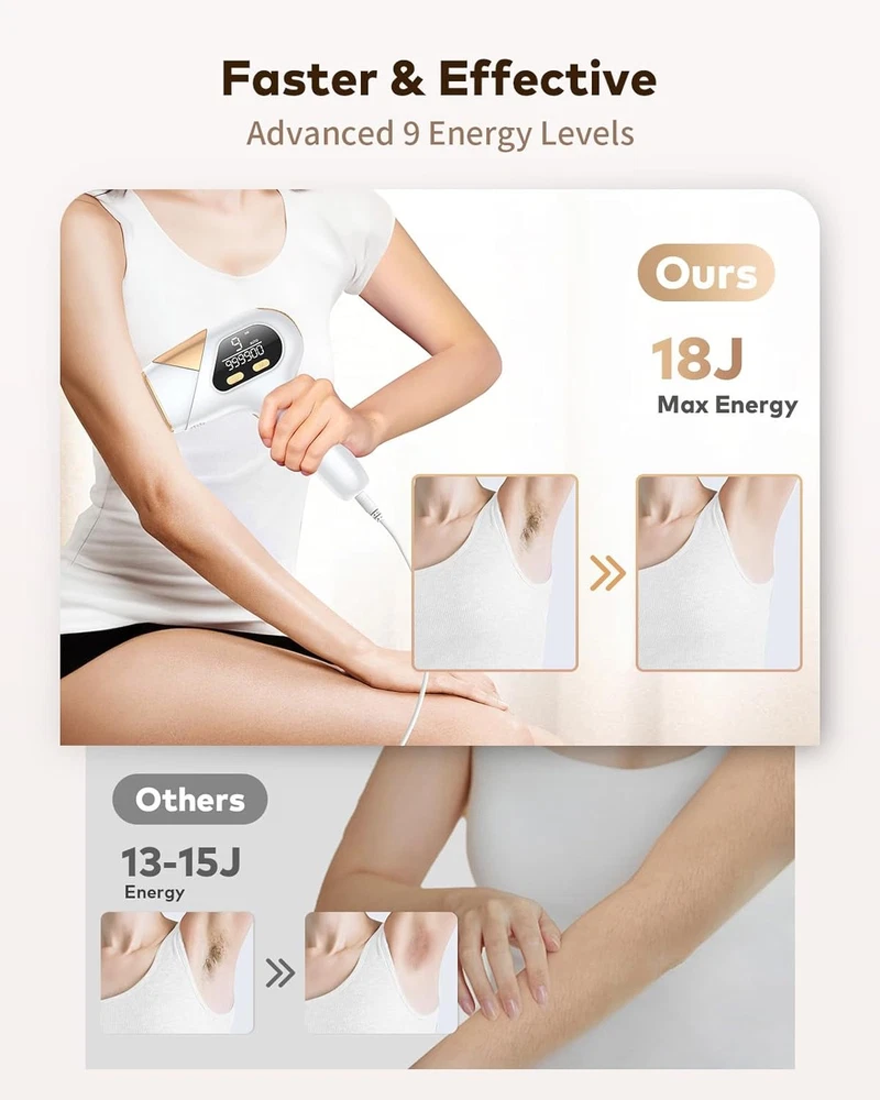 94% less hair in Just 8 Weeks: Got flawlessly smooth and hairless skin in 8 Weeks with Salon experience. Experience up to 94% hair reduction after 12 sessions. advanced IPL technology put hair follicles into a dormant state for continuous results. The ultimate at-home alternative to expensive IPL laser hair removal and ingrown hair prevention. Head to Toe Smooth in 12 Minutes: Ease up your hands, Get a full treatment done in just 12 minutes on bikini lines, underarms, legs, back, chest, and other body parts(NOT suitable for eyebrows and Tattoos). Auto-Glide Mode with accelerated flash speed enables quick, easy, safe at-home hair removal. 9 Energy Levels: The LYSMOSKI laser hair removal device for women and men, the upgraded functions let you achieve skin care during hair removal. We recommend new users start at Level 1 and build up. Finding the perfect gift and enjoying long-lasting, smooth skin is simpler than ever with LYSMOSKI IPL. NOTE: The hair removal device is a plug-in device – not wireless. Safe IPL Technology & Laser-like Results: At-home laser hair removal is designed with advanced IPL technology to ensure safety and effectiveness for most skin and hair types, for both women and men. Achieve hair reduction in the comfort of your own home, say goodbye to the hassle of frequent razors and hair removal waxes, Safely remove unwanted hair from traditional laser treatments without the razor burn, ingrown hairs, and pain. Customer Support: LYSMOSKI laser hair removal device comes with 24-month warranty and 100-day money back policy. Follow the instructions in the included manual to remove body hair faster. Upgraded 999,000 Flashes is enough for a lifetime of use. Clinically proven, IPL hair remover device system is 100% SAFE to use at home for women and men. Product Description The video showcases the product in use. The video guides you through product setup. The video compares multiple products. The video shows the product being unpacked.