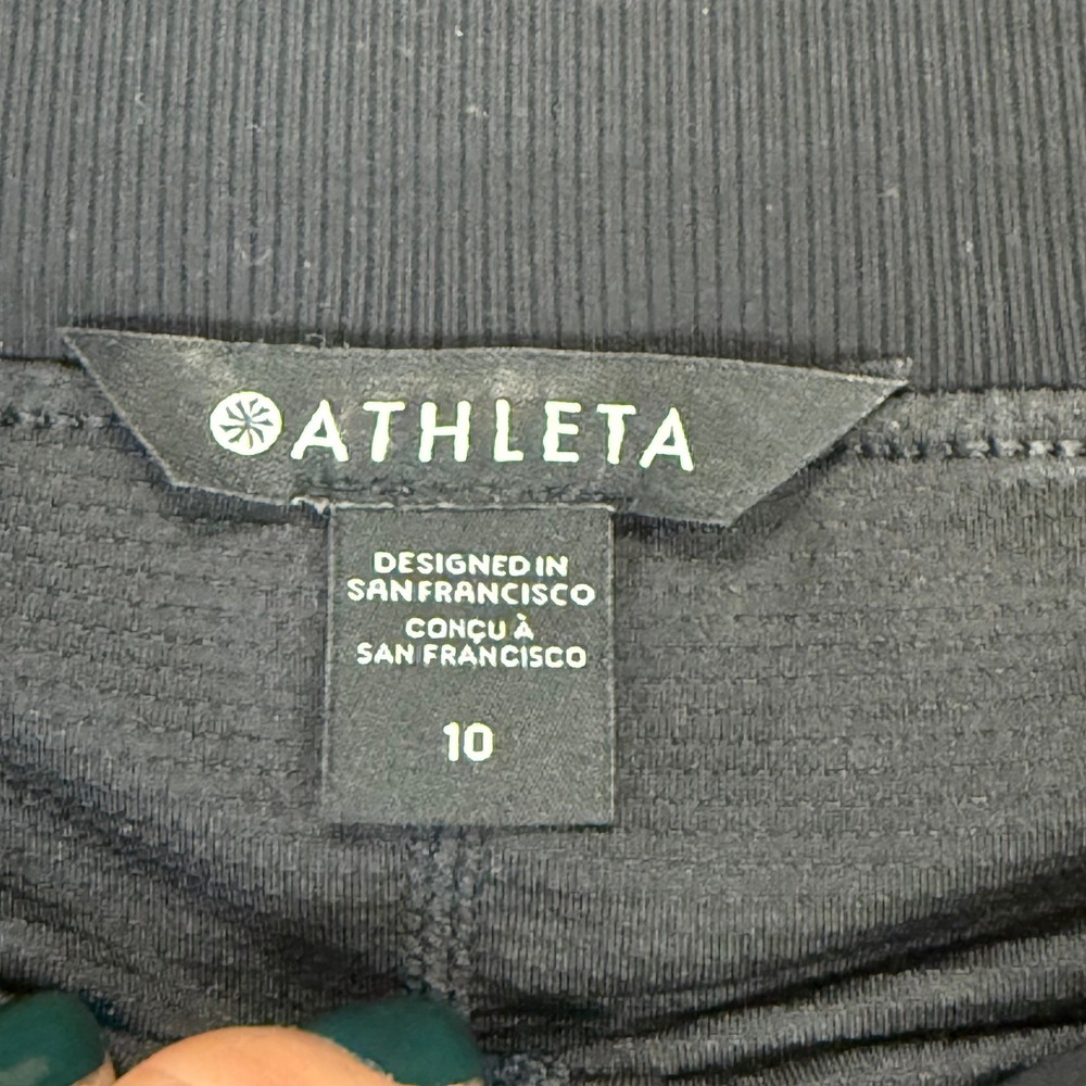 Athleta black athletic skort featuring a comfortable elastic waistband and zippered pocket detail. Designed with built-in shorts for comfort and mobility, and two back patch pockets for storage. The fabric offers a smooth finish and excellent performance. Measurements: • Waist: 14 in • Length: 18 in Department: Women Type: Skirt Style: Athletic Performance/Activity: Golf, Tennis, Yoga, Gym & Training Skirt Length: Short Fit: Athletic Pattern: Solid Features: Stretch, Lightweight, Wrinkle Resistant, All Seasons Occasion: Activewear, Casual Closure: Pull On Material: 100% Polyamide Fabric Type: Mesh Keywords: Athleta skirt, athletic skort, tennis skirt, golf skort, activewear, performance wear, sporty, athleisure, workout skirt, zipper pocket, built-in shorts, black skort Item is preowned, effort has been made to ensure all flaws are displayed photos serve as additional description Sizing varies by manufacturer and time period, please see measurements.