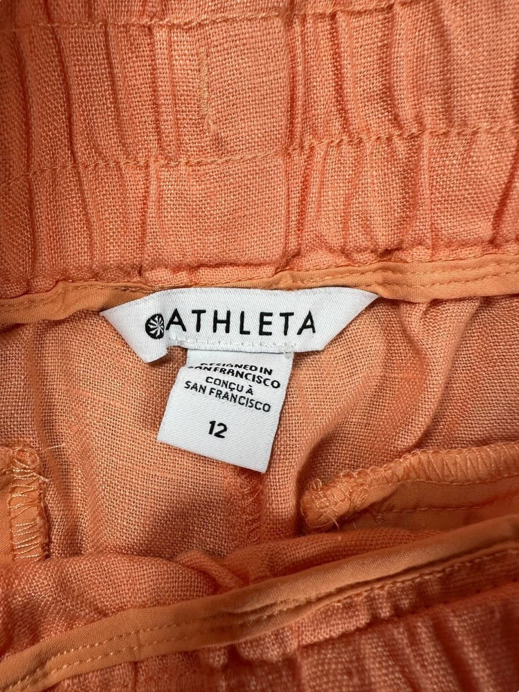Athleta Cabo 100% Linen Joggers Womens Size 12 Orange Athleisure Casual Travel Great Preowned Condition Please refer to photos for size measurements / reach out with any questions or if you are wanting additional photos!