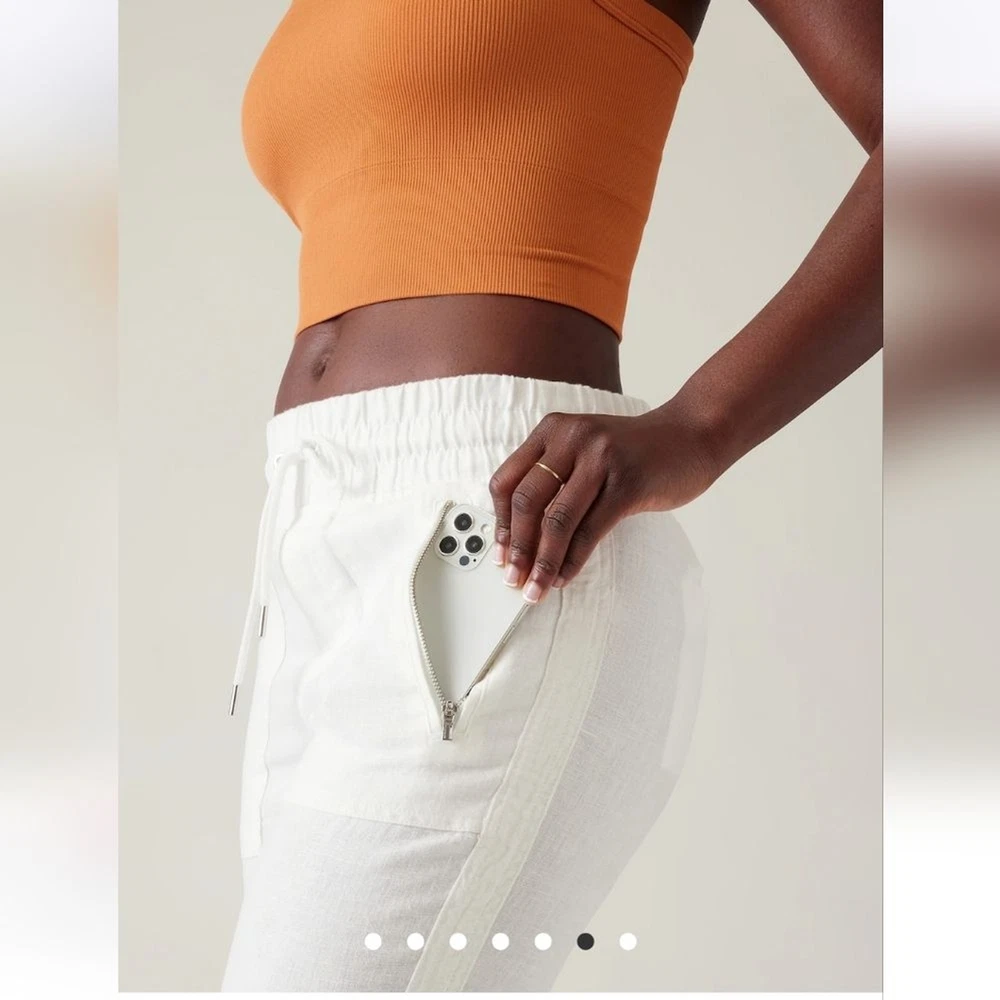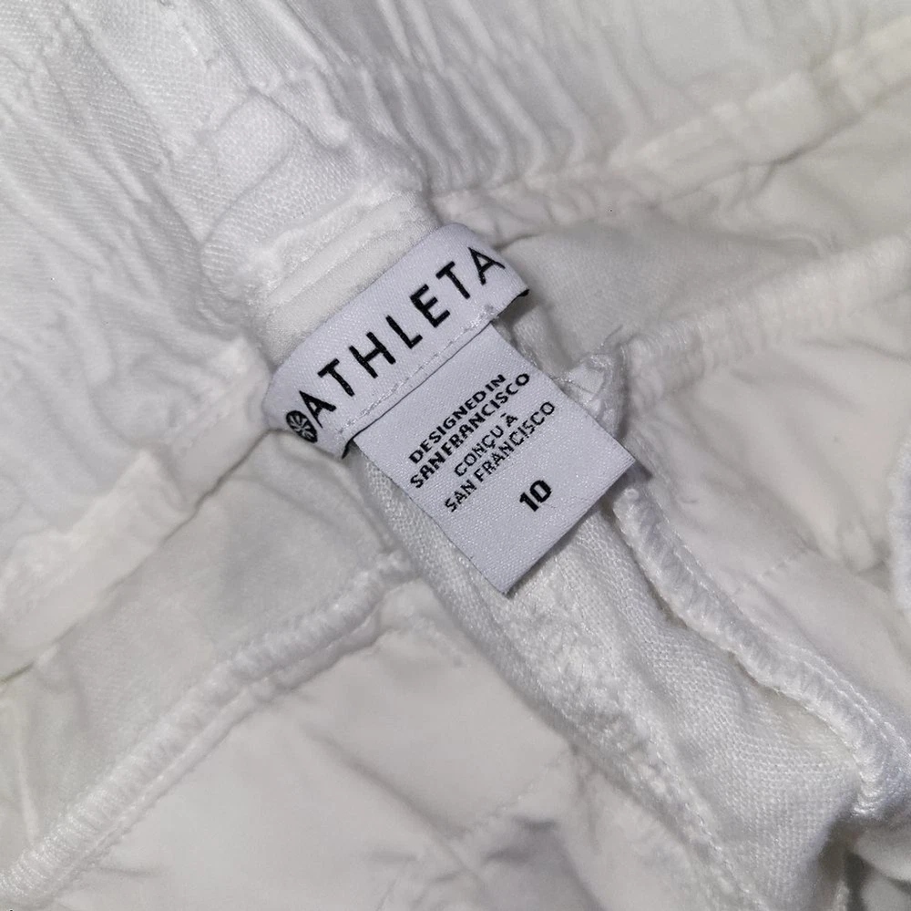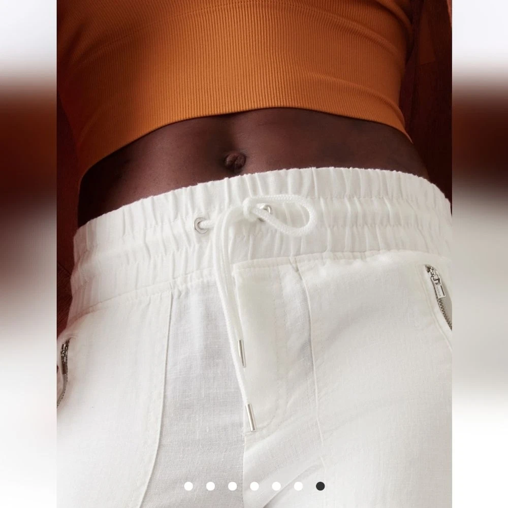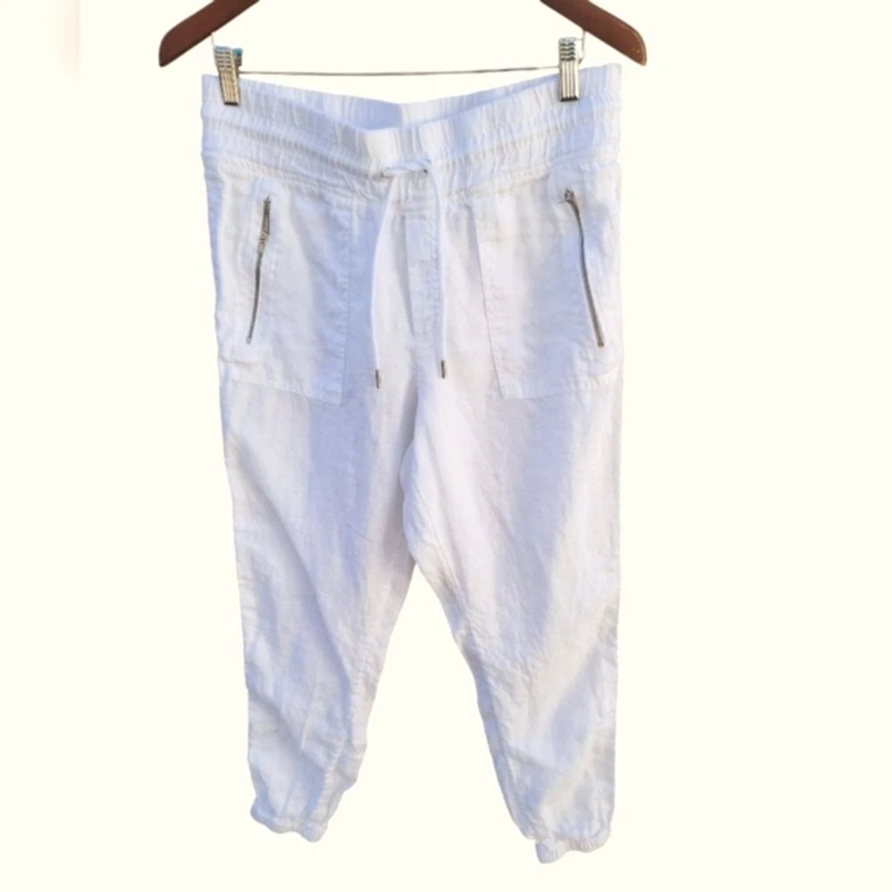 In excellent like new condition. Size 10 Waist 16 Rise 11 Inseam 26 Semi-fitted, skims easily over the body Linen Machine wash and dry. FOR: Warm-weather travels, resort vacations and to and from the beach FEEL: Subtly textured linen feels light on the skin