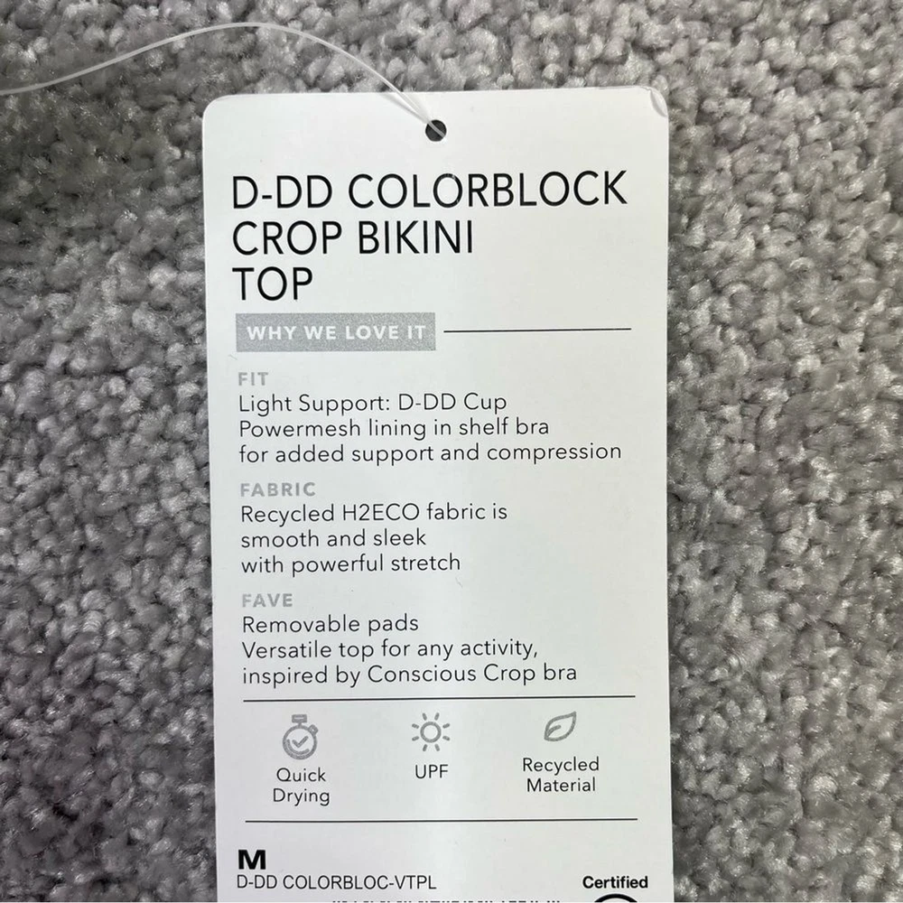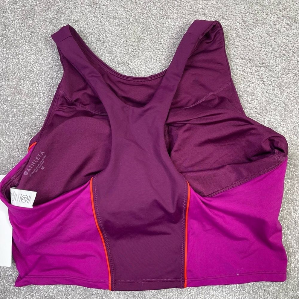 New with tags. Size medium D-DD Cup Size Purple/Pink colorblock. Light support for workouts. Padded - Removable Padding.