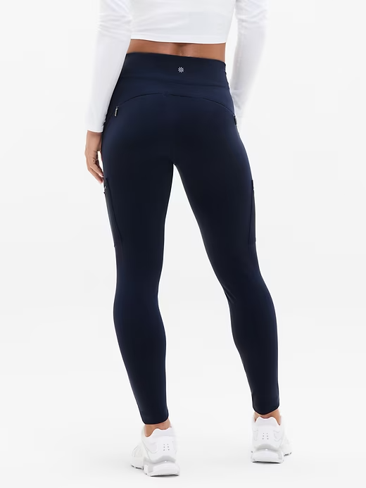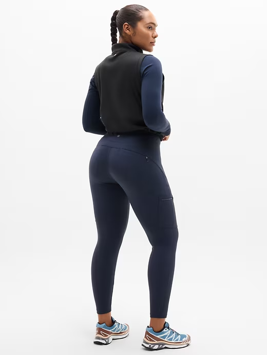 FOR: Hiking, climbing and exploring FEEL: Our favorite durable, adventure-ready fabric resists nicks and tears on cold-weather explorations FAVE: Six secure zip pockets to stash your essentials Internal drawcord for adjustability Size & fit Fitted next to the body with a high-rise waistband Sits at natural waist Inseam: Regular/Plus: 28", Petite 26", Tall 31" Fabric & care 75% Recycled Polyester/25%LYCRA ABRASION-RESISTANT: Resists snags and tears RATED UPF 40+ (Excellent Protection);COMPRESSION: Keeps you held in and supported in all the right places SUSTAINABLE: Made with Recycled Nylon, a high-performance material that helps lessen our impact on the world Machine wash and dry. Imported.