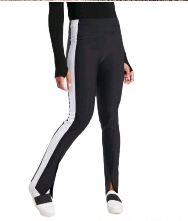 The Athleta Interstellar Tight in Color Block Black is designed for women in size 8, ideal for work, travel, and commuting. These high-rise pants feature a zip closure and a back stash pocket, making them practical for various activities like cycling, hiking, and cross-training. Made from Nylon/Lycra fabric with packable technology, these athletic pants offer a comfortable fit with a touch of classic style, perfect for those who appreciate both performance and fashion in their athleisure wardrobe.