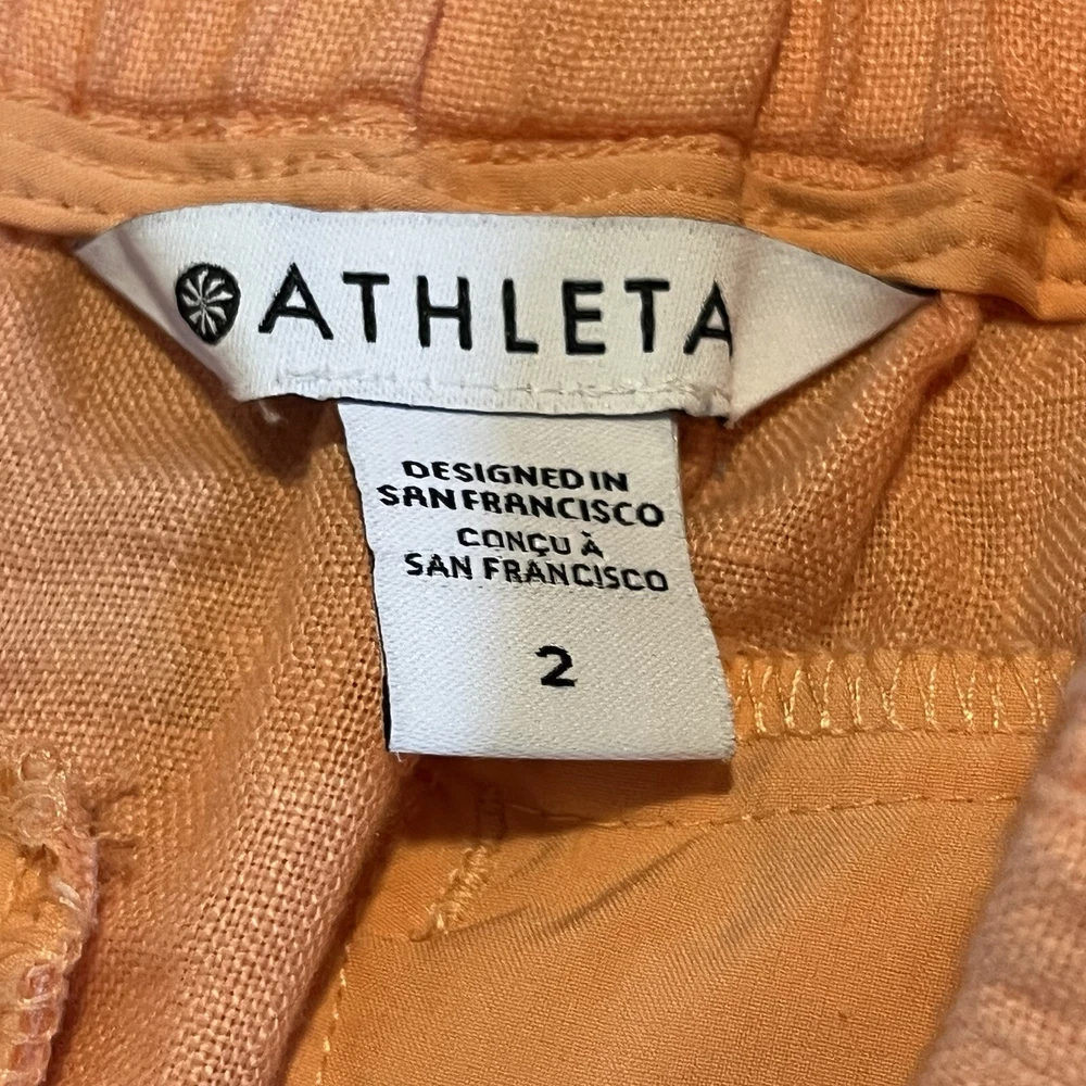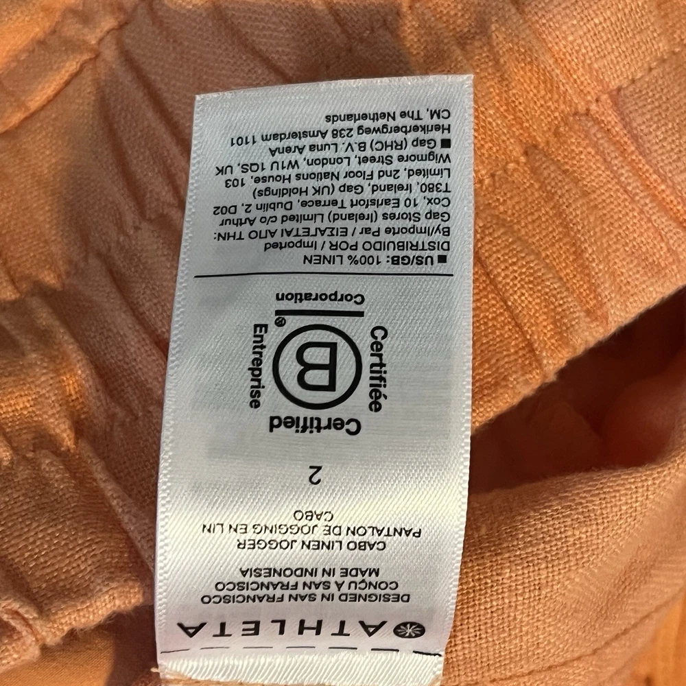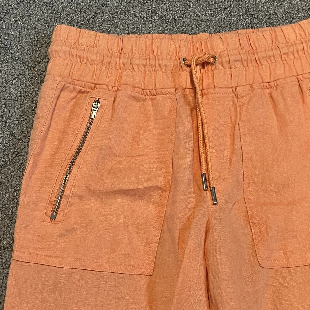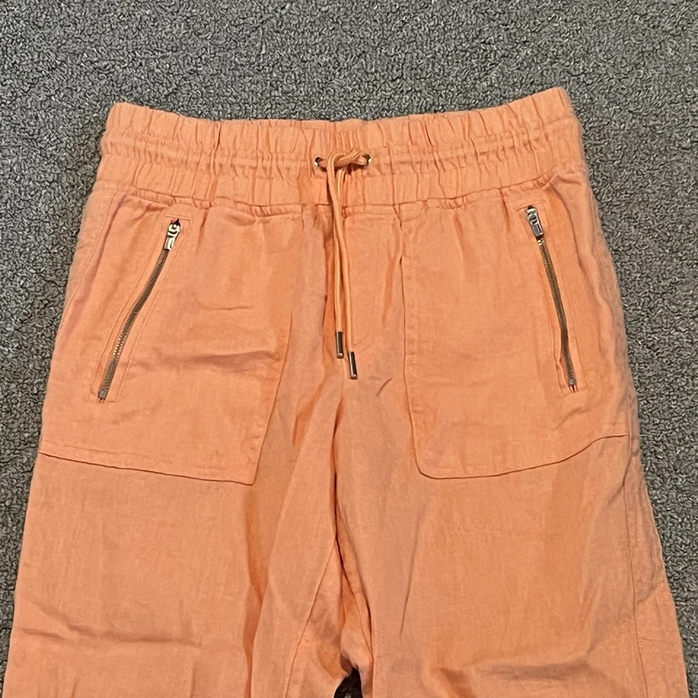 Athleta Pants Womens 2 Orange Cabo Linen Joggers Drawstring Zip Pocket Athletic See measurements for accurate fit Inseam 27 inches Rise 11 inches Waist 14 inches across Measurements are done flat lay