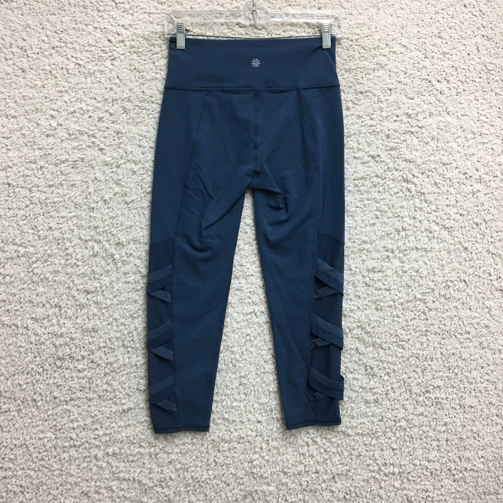 Season: Fall, Spring, Summer, Winter Performance/Activity: Gym & Training, Walking, Yoga Inseam: 23 in Pattern: Solid Size: S Type: Leggings Occasion: Activewear, Casual Color: Blue Theme: Athleisure, Sports Size Type: Regular Brand: Athleta Seller Notes: “Good Used Condition. Please, See Pictures for Full Condition and Measurements.” Style: Cropped Features: Breathable, Comfort, Compression, Easy Care, Elastic Waist, Stretch Waist Size: 26 in Fabric Type: Knit Material: Nylon, Spandex Fabric Wash: Medium Department: Women Rise: High (Greater than 10.5 in) Garment Care: Machine Washable Country of Origin: Vietnam