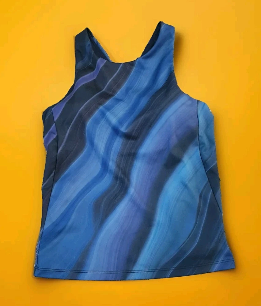 Elevate your activewear game with this Athleta Lightning Print Conscious Support Racerback Tank Top Sports Bra in size Small. Perfect for any performance or activity, this tank top features a solid pattern with a round neckline and sleeveless design. The pullover closure and racerback strap type provide a comfortable and secure fit, while the built-in bra and stretchy, breathable fabric offer slimming and easy-care features In excellent condition