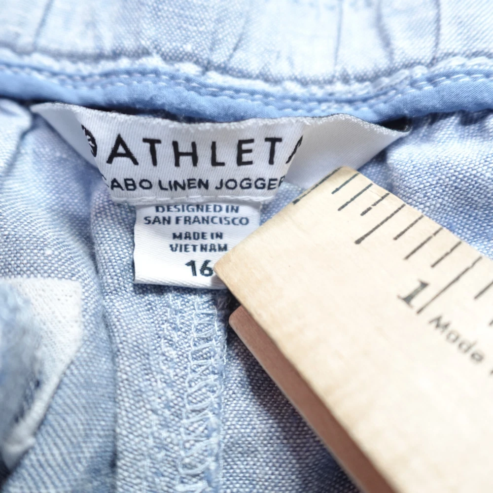Size: 16 Size Type: Regular Closure: Pull On Brand: Athleta Type: Pants Color: Blue Pattern: Solid Department: Women Material: Linen Style: Jogger Leg Style: Straight