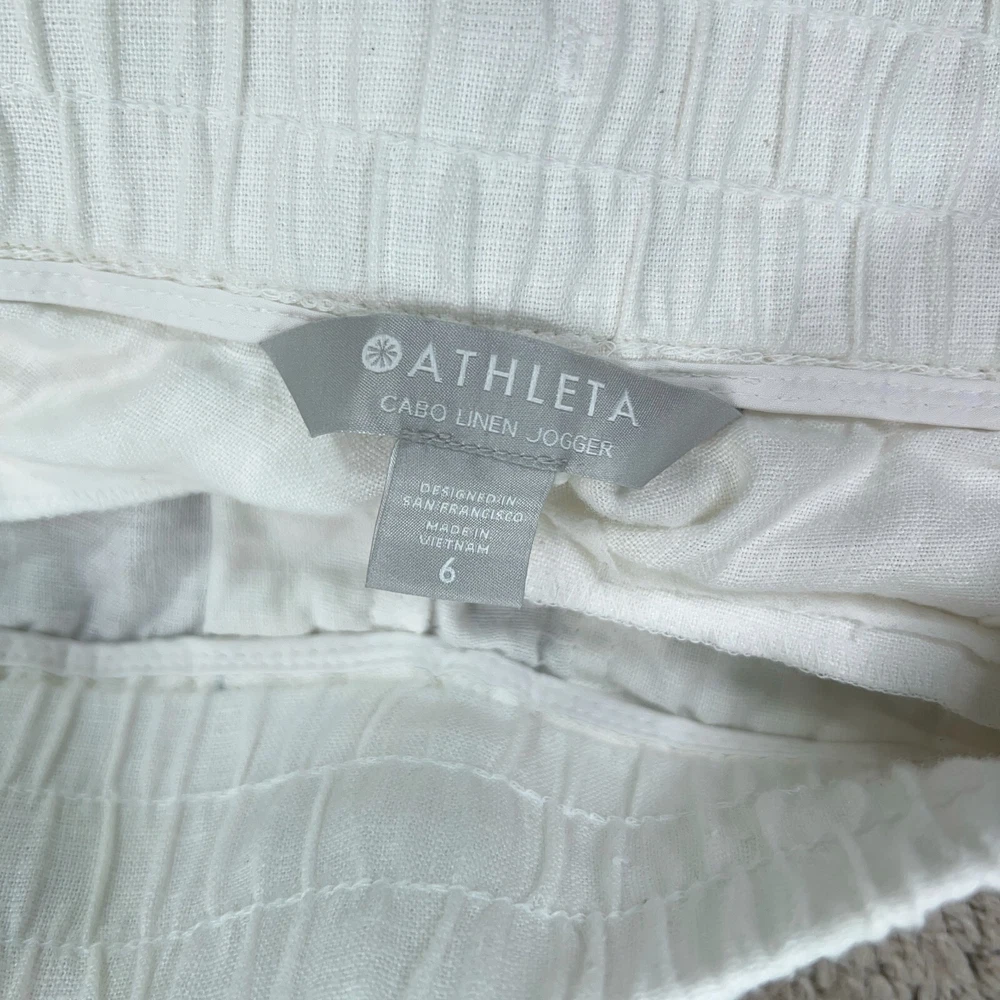 Athleta Pants Womens 6 White Cabo Linen Jogger Coastal Travel Resort Vacation Condition: - Overall in good used condition. - No rips, stains, or holes. - 100% linen. Size: - Womens 6. Measurements: - Previous washings may change the sizing written on the tag. - Please refer to the photos above for all measurements. - Please compare our measurements to that of one of your favorite garments. - Please note, item measurements are approximate . All items are bagged and sealed after being photographed, then stored in a smoke free environment to ensure the item is exactly the same as when photographed. I carefully package and ship daily. Feel free to contact me with any questions. All items have been washed per eBay standards & policies.
