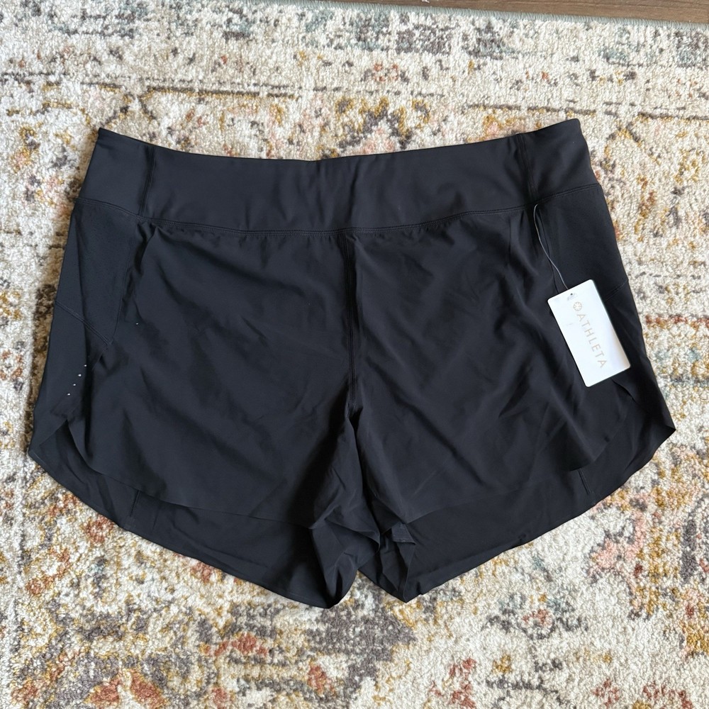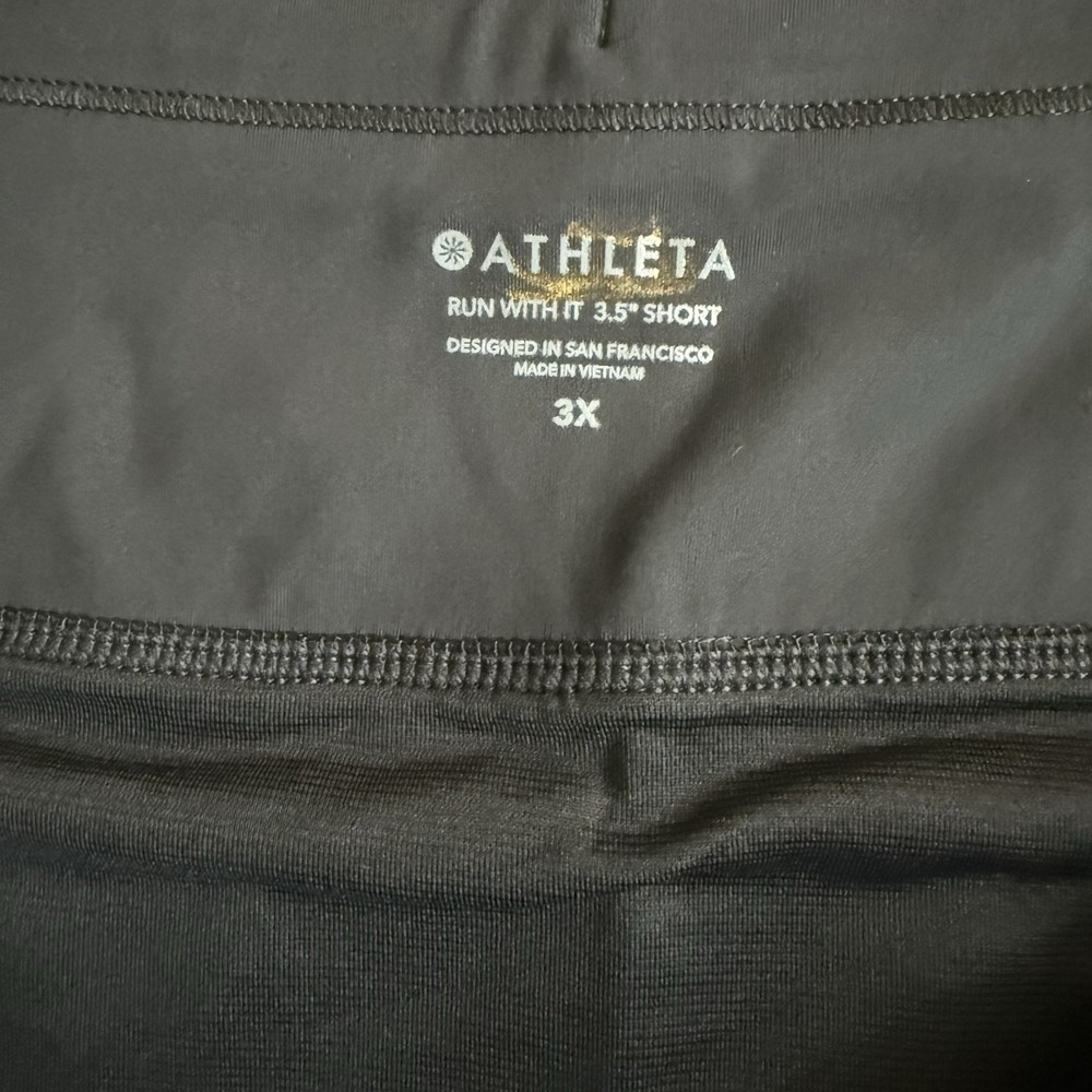 Athleta Run With It 3.5" Short - Size: 3X (Plus) - Condition: New With Tags (NWT) - Color: Black - MSRP: $59.00 Item Details: - Inseam: 3.5" - Fabric: Featherweight Stretch (Recycled Polyester/Spandex) - Liner: Yes, built-in brief - Pockets: Back zip pocket - Waist: Mid-rise, semi-fitted - Features: Split hem for mobility, UPF protection, moisture-wicking