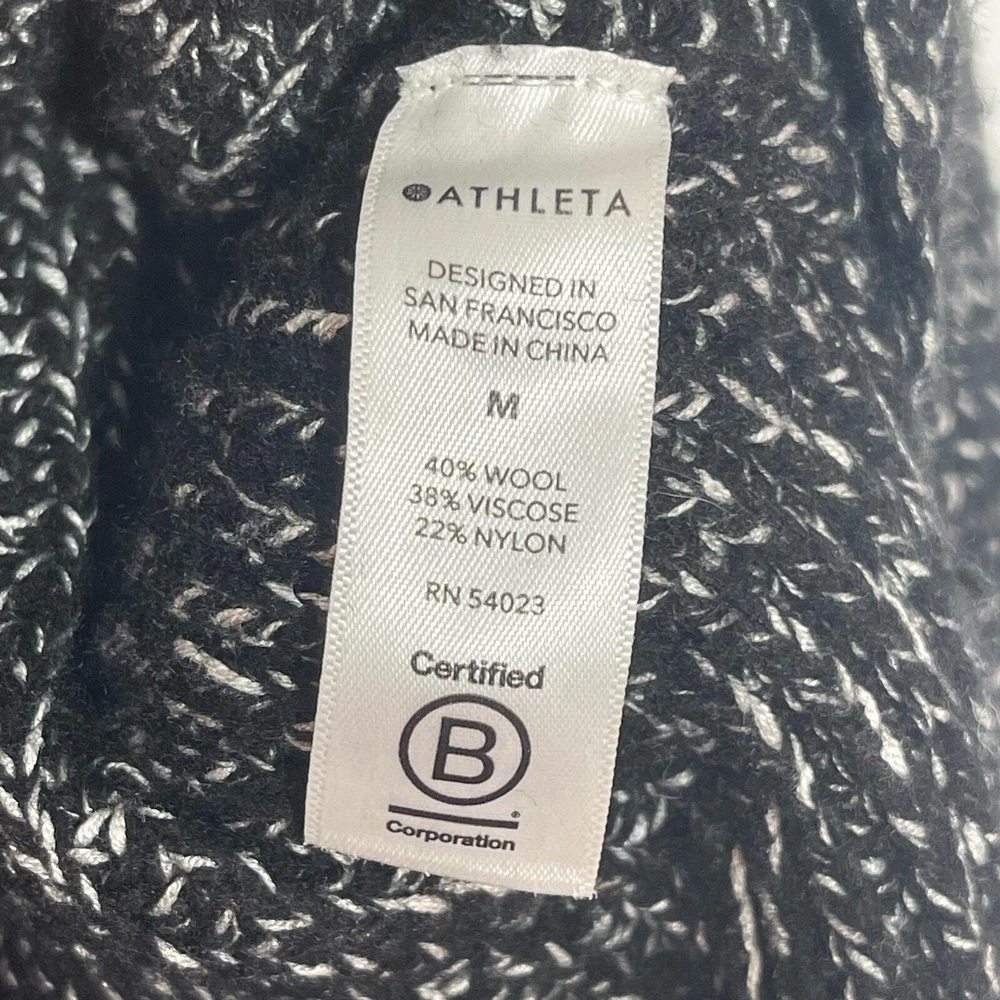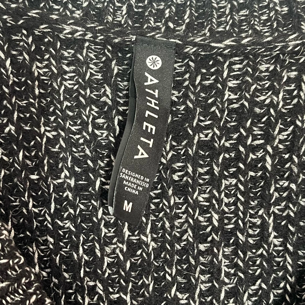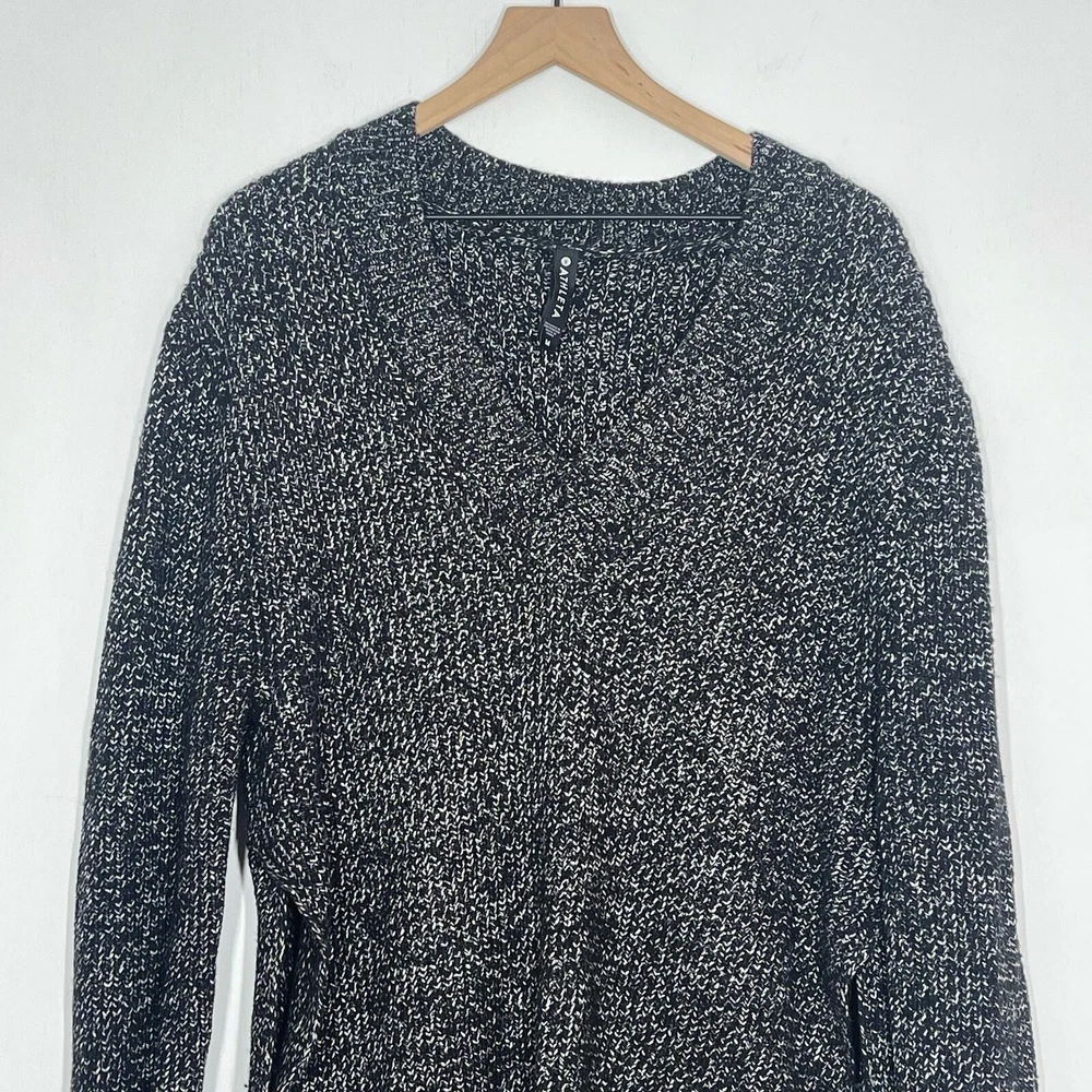 Athleta Shasta Pullover Sweater Women's Size Medium Black V-Neck High-Low Knit Brand: Athleta Size: Medium Style: Sweater Color: Black Condition: Good Preloved Condition This cozy wool blend sweater features an oversized chunky knit v-neck, folded long sleeve cuffs, long side slits, and a marled black and white color. The oversized fit covers your assets while keeping you warm and cozy. The relaxed silhouette is perfect over leggings or jeans and the wool blend fabric adds a hint of shine to your look. This sweater is sure to keep you looking and feeling stylish all year round. Approximate flat lay measurements Pit to pit 22in Length 35in