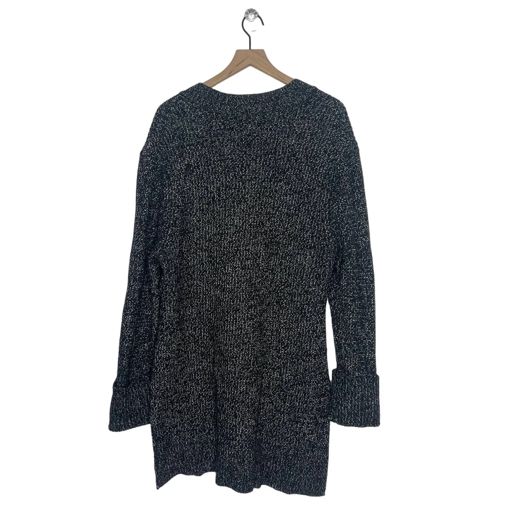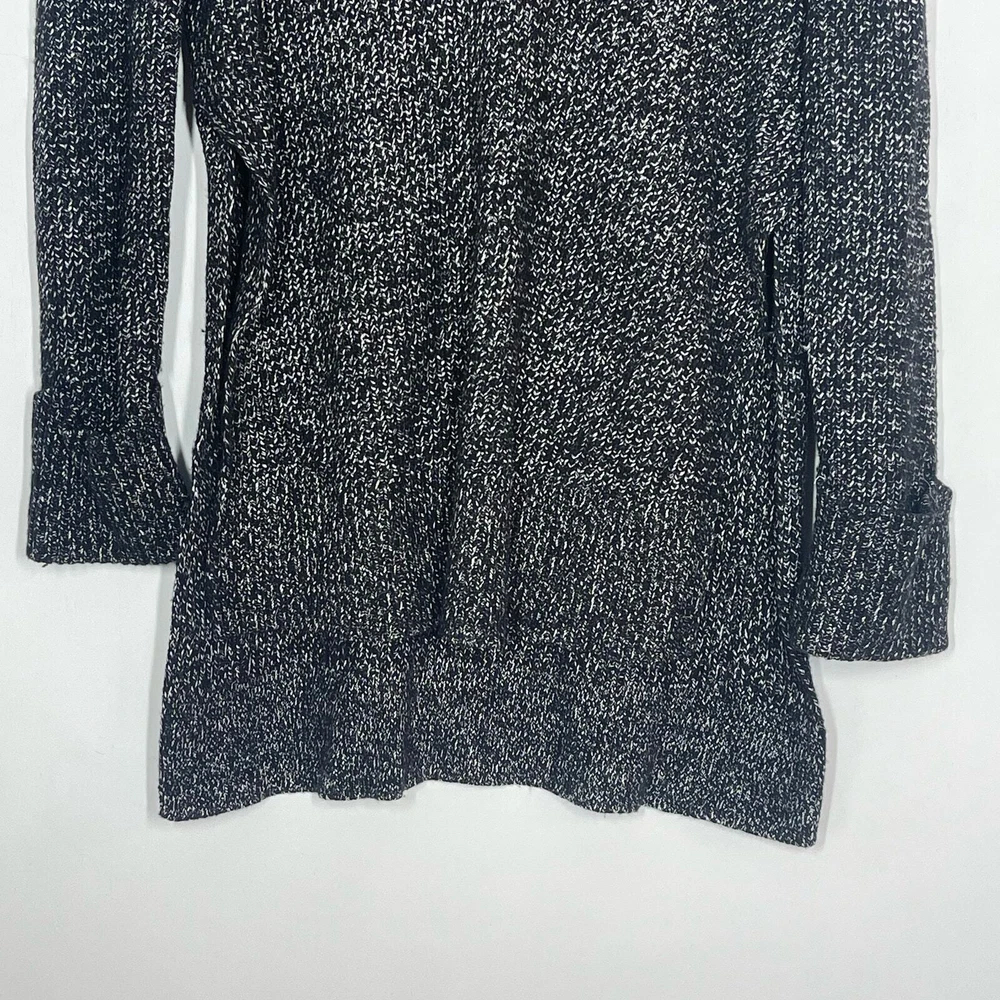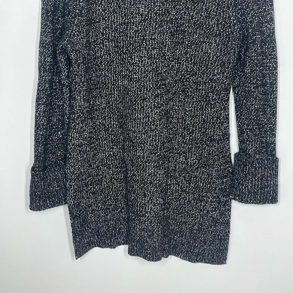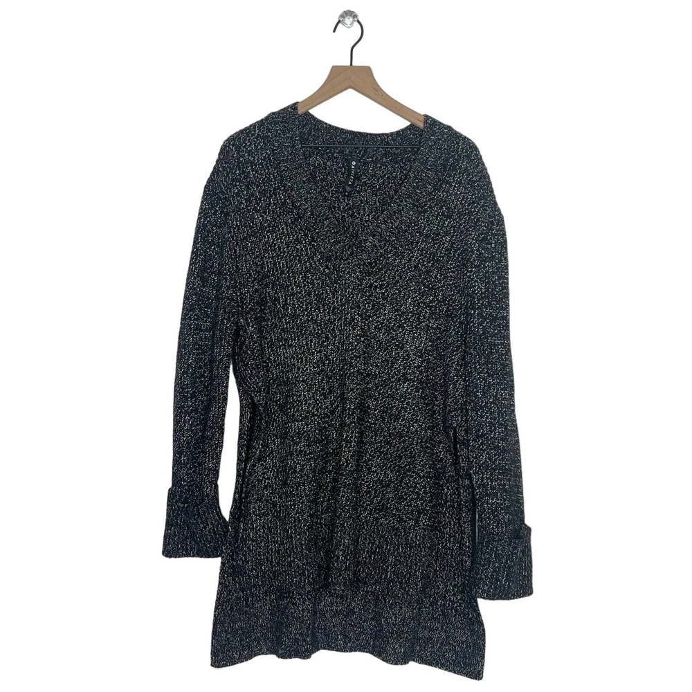 Athleta Shasta Pullover Sweater Women's Size Medium Black V-Neck High-Low Knit Brand: Athleta Size: Medium Style: Sweater Color: Black Condition: Good Preloved Condition This cozy wool blend sweater features an oversized chunky knit v-neck, folded long sleeve cuffs, long side slits, and a marled black and white color. The oversized fit covers your assets while keeping you warm and cozy. The relaxed silhouette is perfect over leggings or jeans and the wool blend fabric adds a hint of shine to your look. This sweater is sure to keep you looking and feeling stylish all year round. Approximate flat lay measurements Pit to pit 22in Length 35in