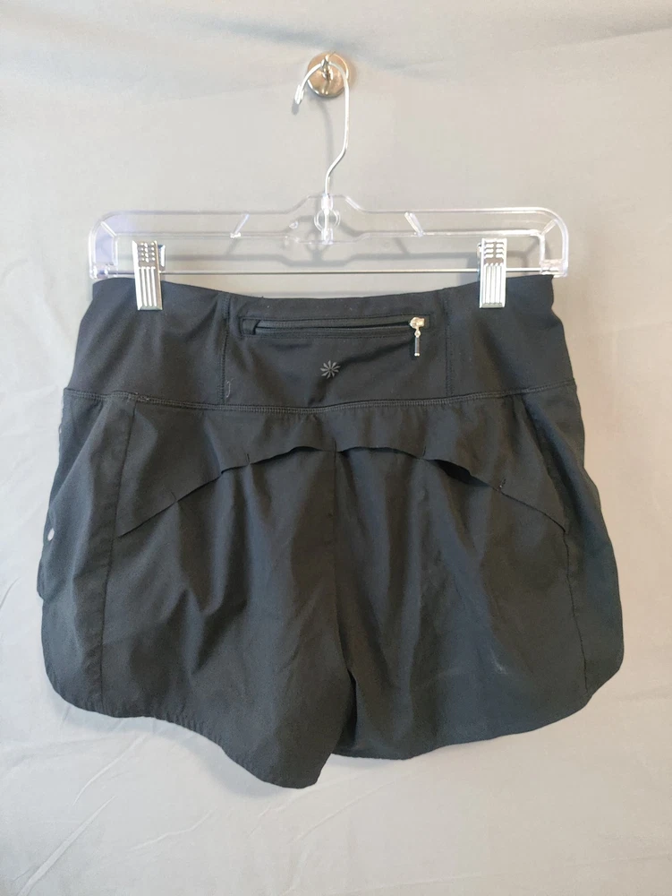 Athleta Shorts Womens Small Black High Rise Running Athletic Zip Pocket Reflective Condition: Gently worn, no visible flaws. Light signs of wear but overall excellent used condition. Brand: Athleta Size: Small (Womens) Color: Black Features a wide high-rise waistband for support and comfort Rear zipper pocket for secure storage of keys or essentials Reflective strip on side for added visibility during low-light runs or workouts Inner liner for comfort and coverage Designed in San Francisco; made in Indonesia Athleta branding on back with embroidered logo Style ideal for running, athletic training, or casual exercise