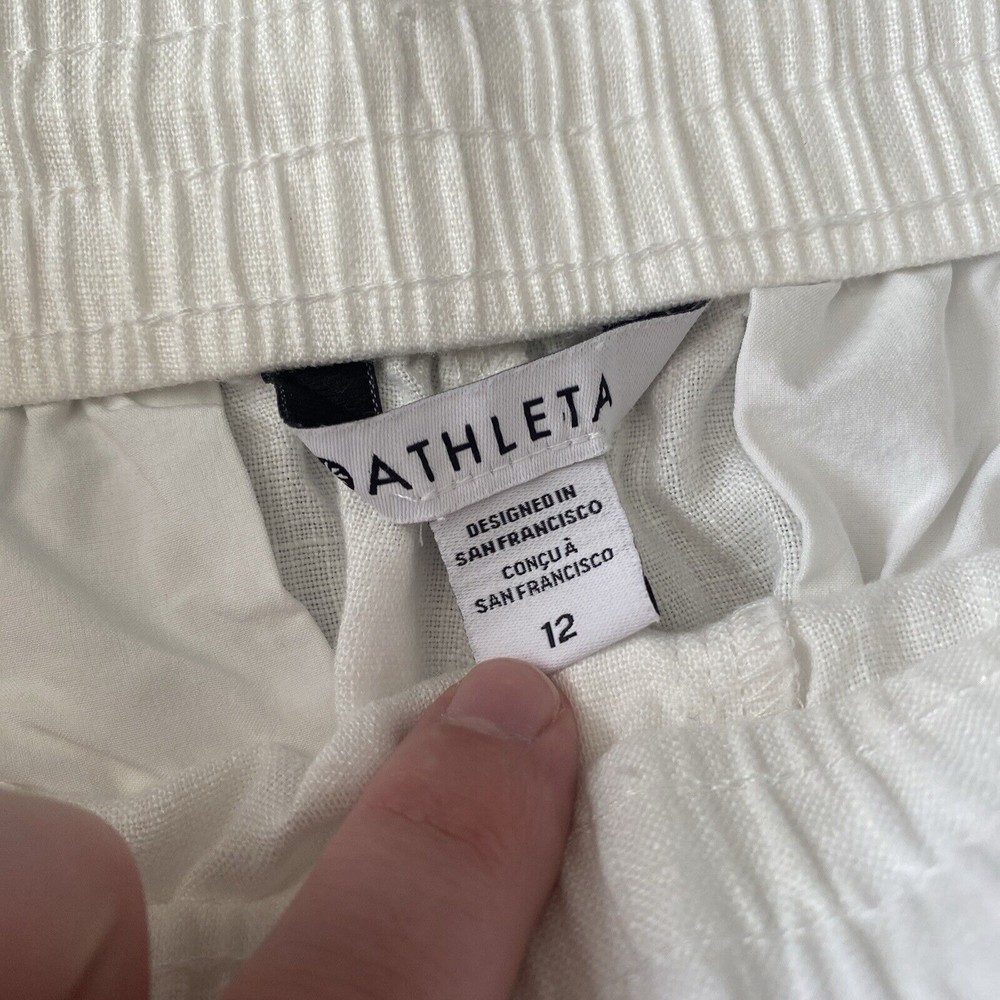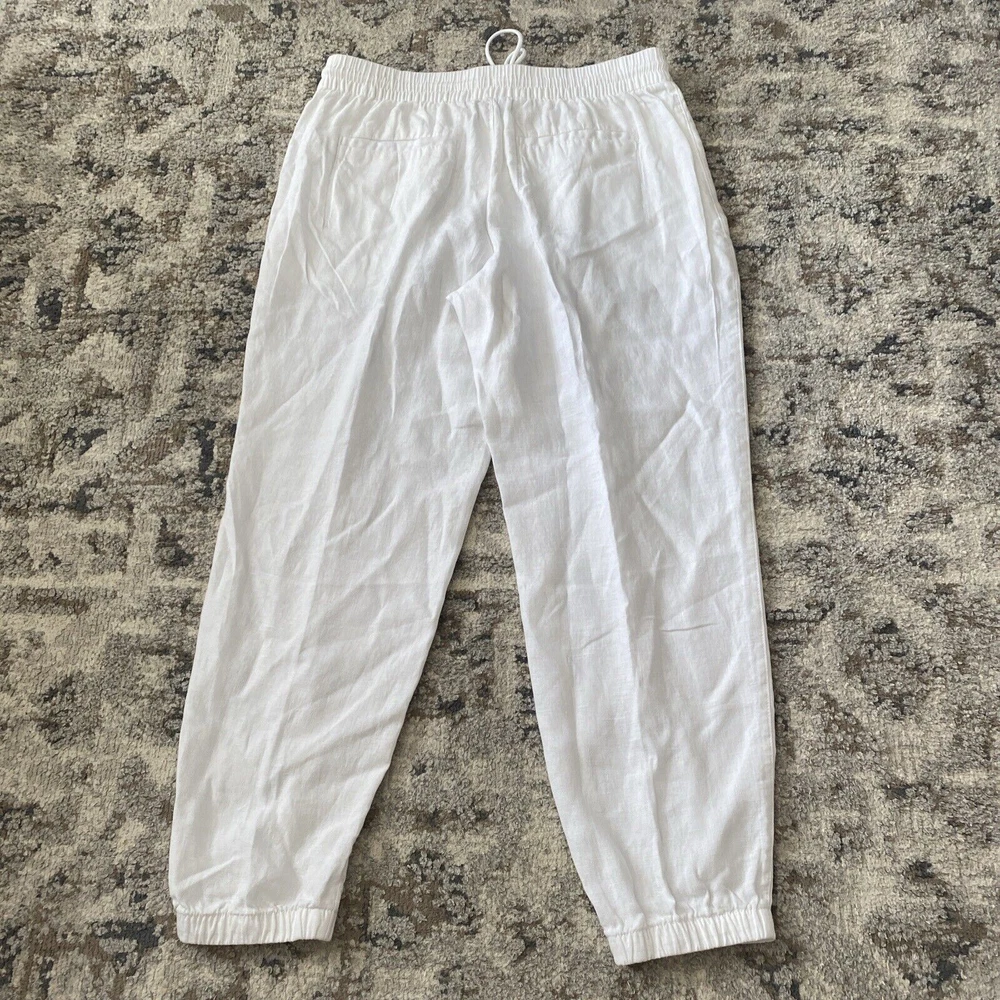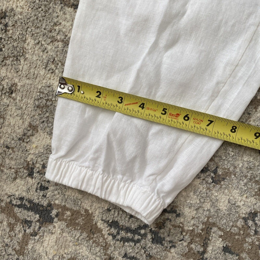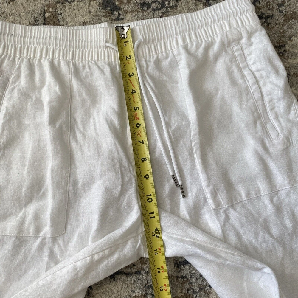 Athleta Womens White High Rise Drawstring Cuff Ankle Retreat Linen Pants Size 12