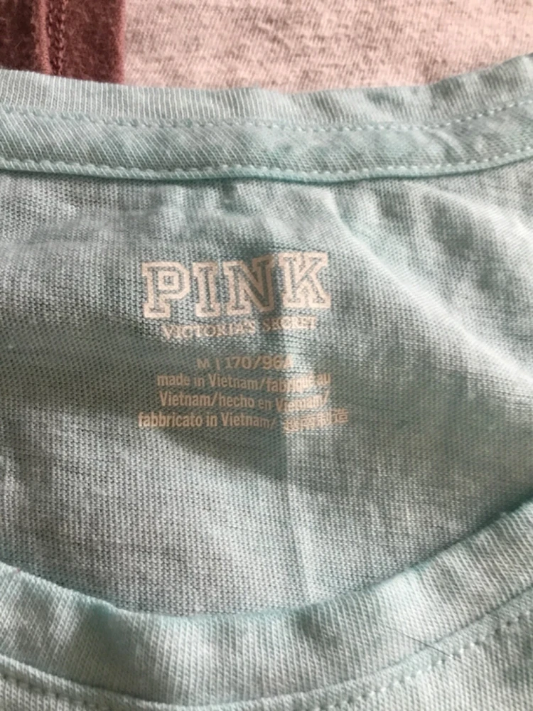 Lot of 3 shirts by PINK. Green,gray,pink. Small