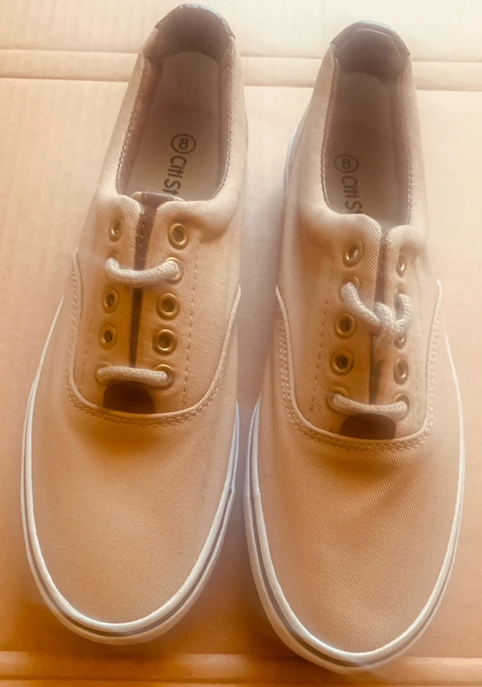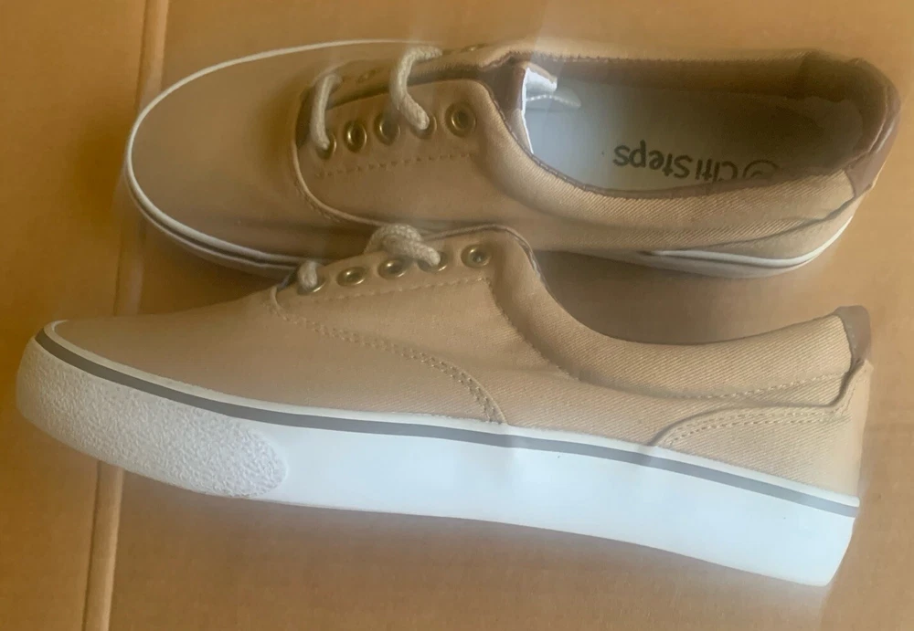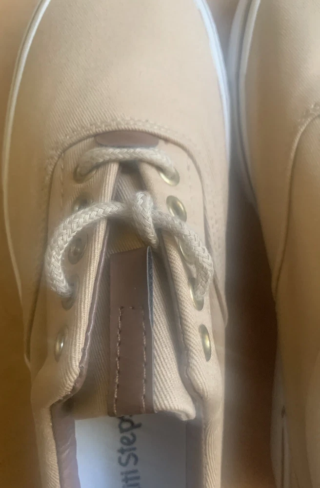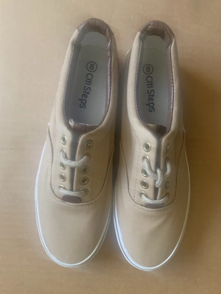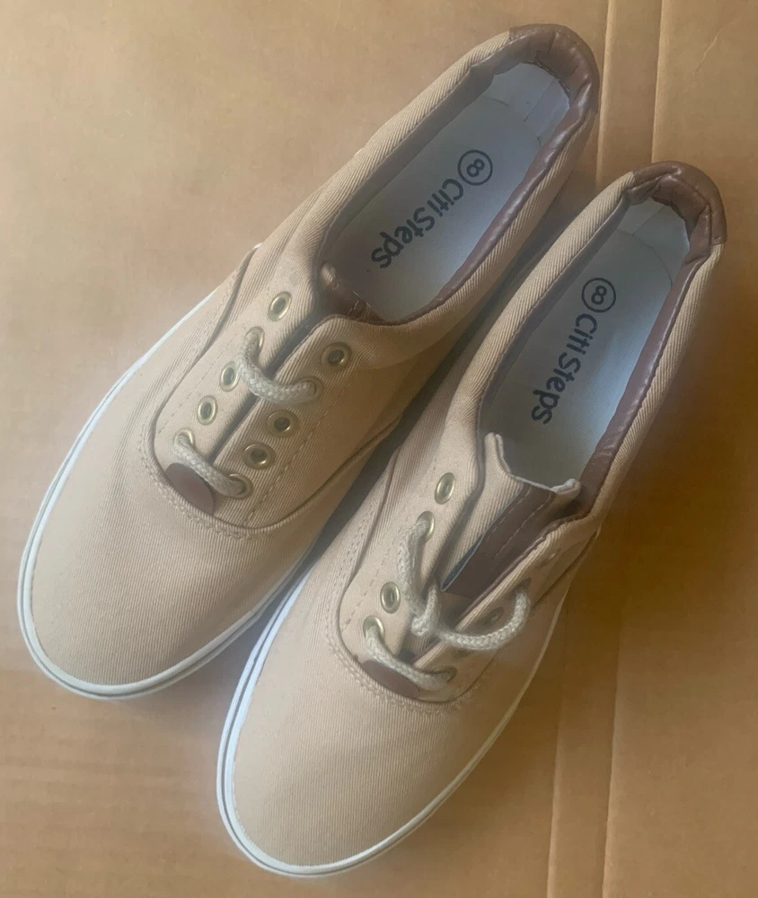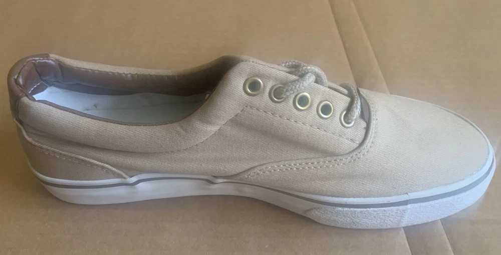 Athletic/Boat Shoe, Camel Color Sz 8M, Eyelet Lace-up Front, Low Treaded Sole. Brown Decor on Tongue & Back