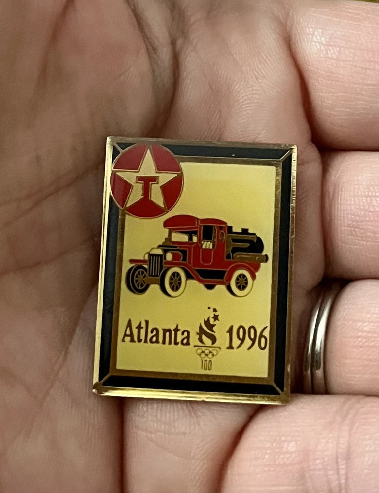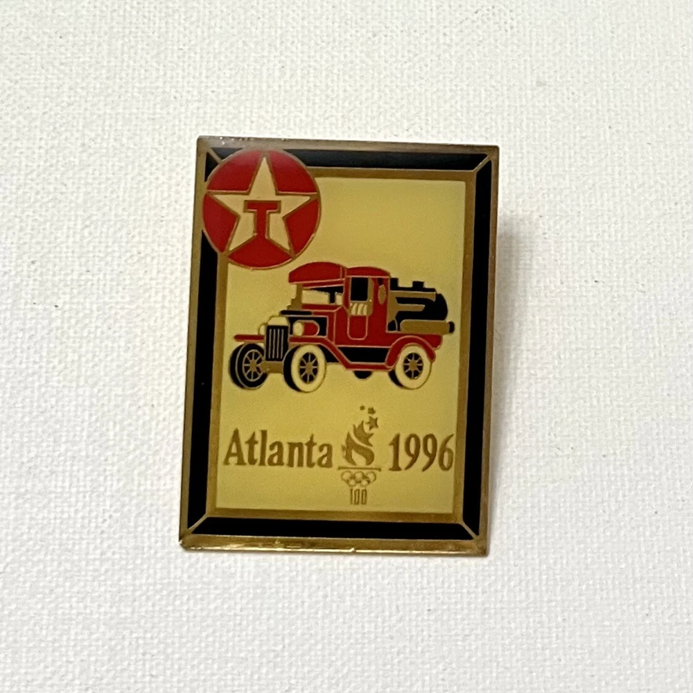 This Atlanta 1996 Olympic Memorabilia enamel tack pin features a Texaco truck design and is a vintage T-2150 piece. It is officially licensed and great for any fan of the Olympics or the USA team. It is the perfect addition to any sports memorabilia collection and a great way to commemorate the Atlanta 1996 Olympics. Condition: Great pre-owned, vintage condition