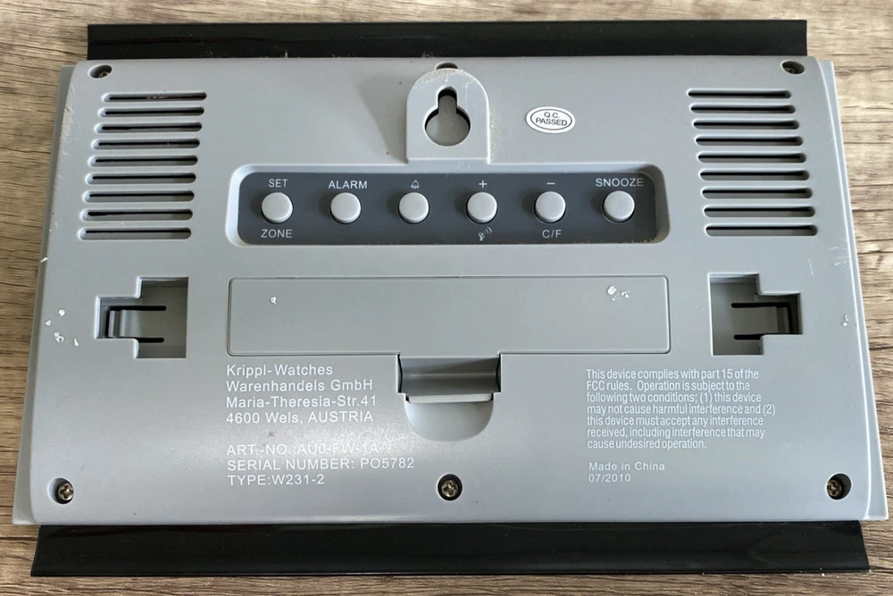 Power Source: Battery Powered Era: 21st Century (2000-Now) Seller Notes: “Excellent Condition” Movement: Atomic Original/Reproduction: Original MPN: W231-2 Type: Alarm Clock Color: Black Frame Material: Plastic Style: Modern Room: any Item Weight: Less Than 1 lb Department: Kids, Teens, Adults Material: Glass, Plastic, DURABLE Engraved: No Brand: Atlanta Barlo Model: W231-2 Item Width: 6 in Features: Weather Station Item Height: 1 in Personalize: No Item Length: 9 in Shape: Rectangular Character: Atom Number Type: Arabic Numerals Finish: Matte Display Type: Digital