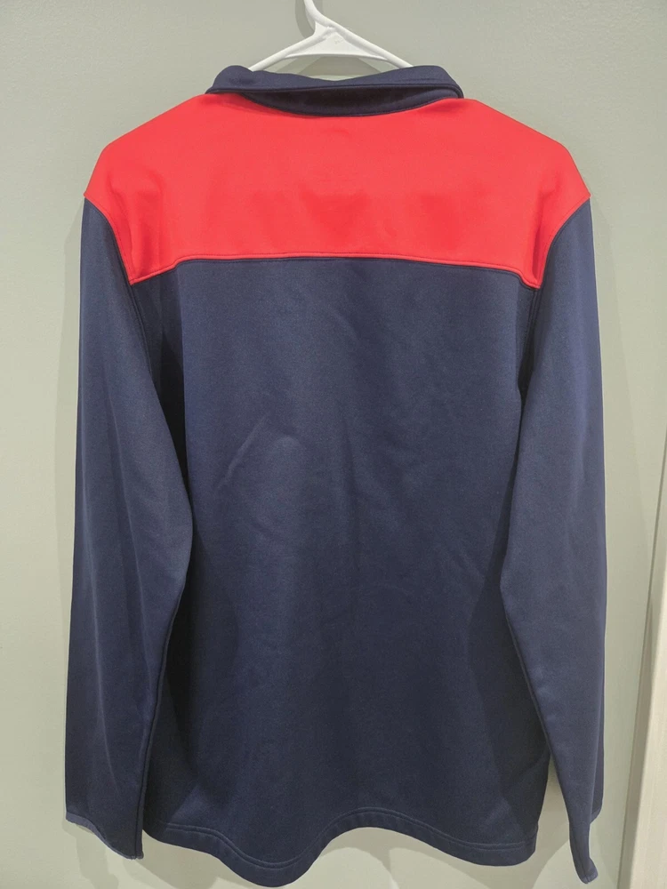 HomeAtlanta Braves MLB Men’s Large Red Blue 1/4 Zip Pullover Jacket Fleece Lined