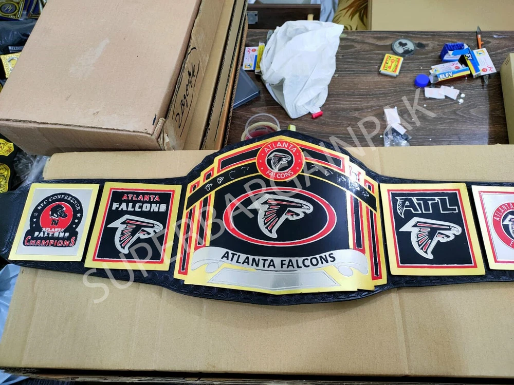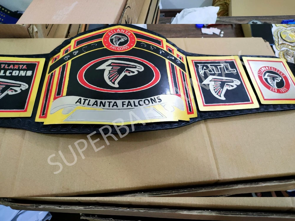 Welcome to our shop ------------------------------------------- We are specialist in manufacturing handmade products:: Our wide range of products include: >>>>Championship Belts WWE | WWF | AEW | UFC | WBC | WCW Product Description *** New Atlanta Falcons Championship Brass 2mm Belt *** Plate Metal: Brass (Zinc available on request with additional cost) Strap: 100% Leather Largest Waist Size: Fits upto 46'' Belt Length: ~50" Weight: 4.17 lbs | 2.01 Kg Plate Thickness: 2mm (4mm Version available on demand with additional cost) ::The belt is well crafted and manufactured to meet the quality demands of fans:: Get your hands on this marvelous piece now! Note: If you need further details kindly inbox us, we will try to be as responsive as possible. ------------------------------------------- Return Policy: Generally we don't have much complains on our products and we make sure to 100% satisfy our clients. We send the product in well Bubble Wrapped packaging so there is highly unlike chance of getting damaged item. In case there is a damage, we will try to give partial refund or you can ask for full refund within 30 days after returning the belt to origin. NOTE: 1. If you have placed the order by mistake or you have purchased a wrong item then we are not going to refund that. 2. Buyer will pay the shipping fee of returning the belt. ------------------------------------------- Happy Shopping! :)