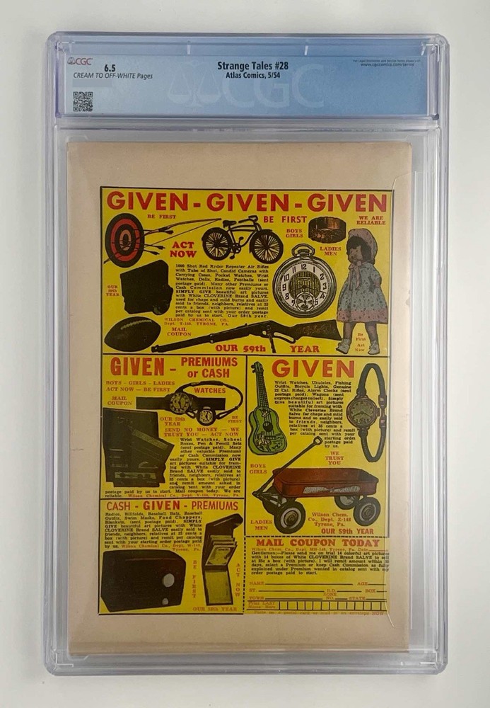 Strange Tales #28 (Marvel, 1954) – Classic Skull Cover! Pre-Code Horror Key – Harry Anderson Cover / Don Perlin Art / Jack Katz Story 📚 Publisher: Atlas (Marvel) 📅 Year: 1954 💀 Cover Artist: Harry Anderson ✍️ Writers/Artists: Jack Katz (story), Don Perlin (art) 🔥 Featured Story: “Come Share My Coffin” 👻 Characters: Chernak, Koslo, Laski, Tullski Description: A rare and classic Pre-Code Horror issue from Strange Tales — one of Marvel’s most sought-after Golden Age titles! Features the haunting story “Come Share My Coffin,” where a prison commandant uncovers a grisly secret: prisoners escaping through coffins of the dead. In a chilling twist, he joins his informant in the coffin — one of the creepiest endings of the entire run! This issue is also notorious for its inclusion in the U.S. Senate Investigation on Comic Books and Juvenile Delinquency, making it a true piece of comic history. Gorgeous skull cover by Harry Anderson, and strong Don Perlin interior art — a must-have for any serious Pre-Code Horror, Golden Age Marvel, or Atlas Comics collector. Key Highlights: • Pre-Code Horror (PCH) classic • Featured in Senate Subcommittee Report on Comic Books • Iconic skull cover – Harry Anderson • Art by Don Perlin (Werewolf by Night, Ghost Rider) • 1950s Atlas/Marvel history piece Strange Tales 28, Marvel 1954, Atlas Comics, Pre-Code Horror, Golden Age Comic, Skull Cover, Harry Anderson Cover, Don Perlin Art, Jack Katz Story, Come Share My Coffin, Senate Investigation Comic, Horror Suspense Comic, Classic Horror Comic Book, 1950s Marvel Horror, Atlas Horror Key, Vintage Marvel Comics, PCH, Golden Age Key Issue, Marvel Collectible