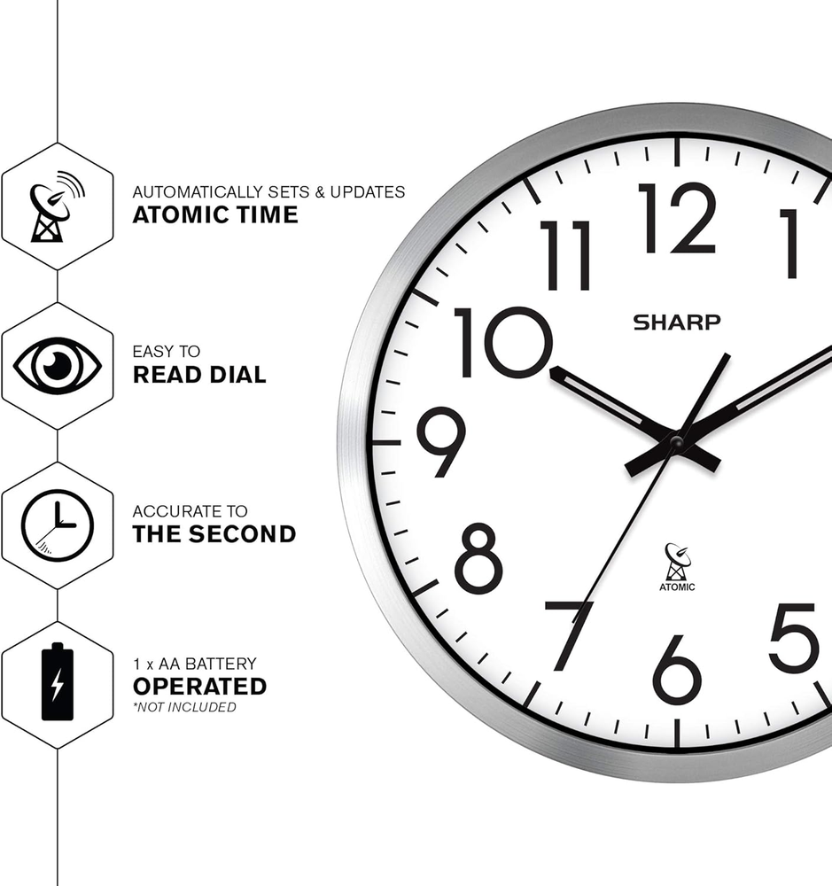 This clock is amazing—it sets itself automatically and keeps perfect time without any hassle. The sleek silver finish looks sharp in any room, and the large numbers make it super easy to read. Battery-operated and simple to set up, it’s a stylish, low-maintenance upgrade. Love the modern design and reliable accuracy!