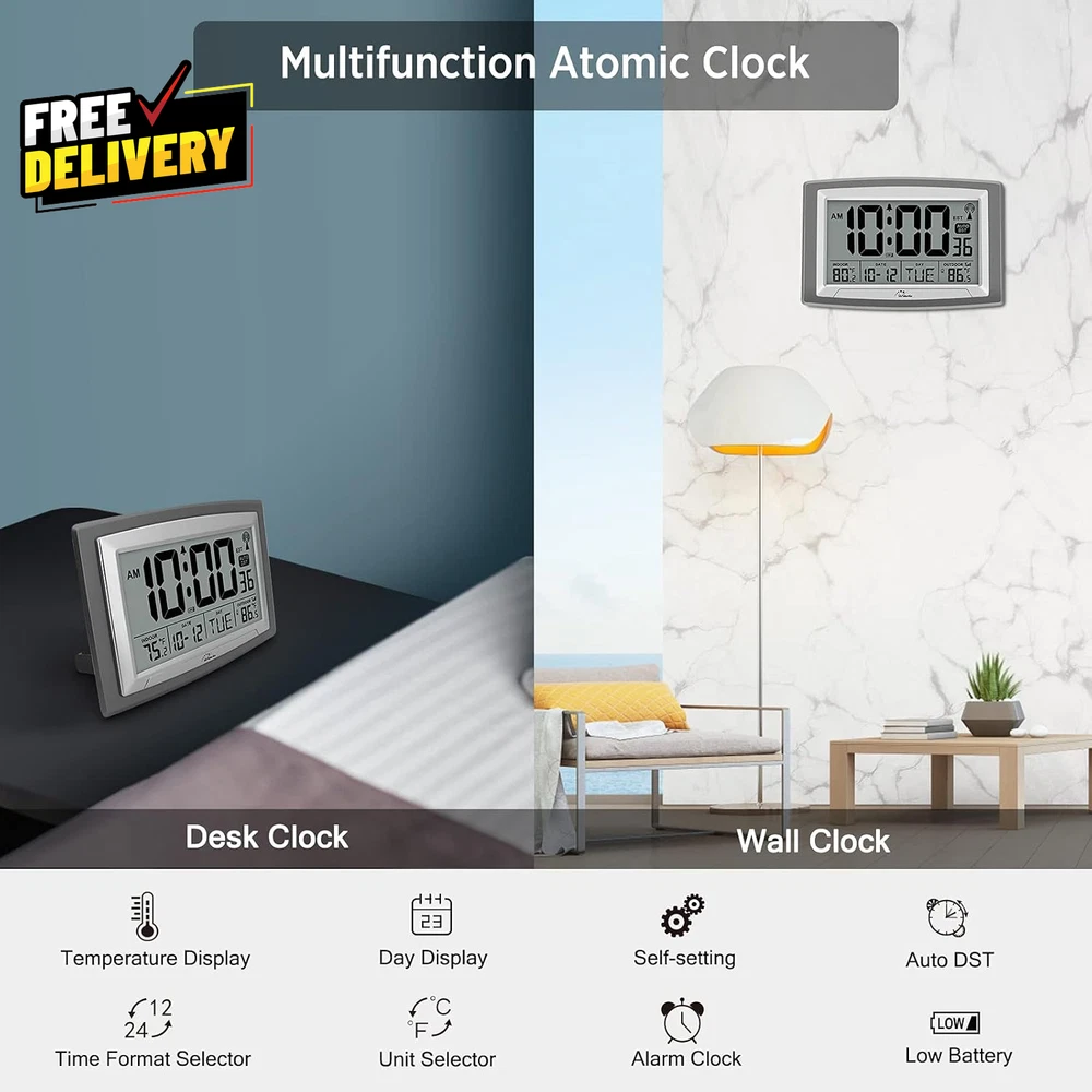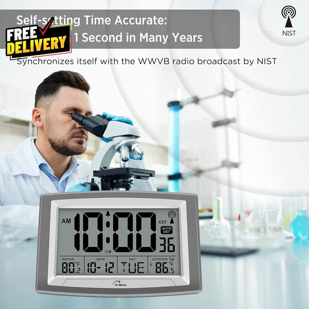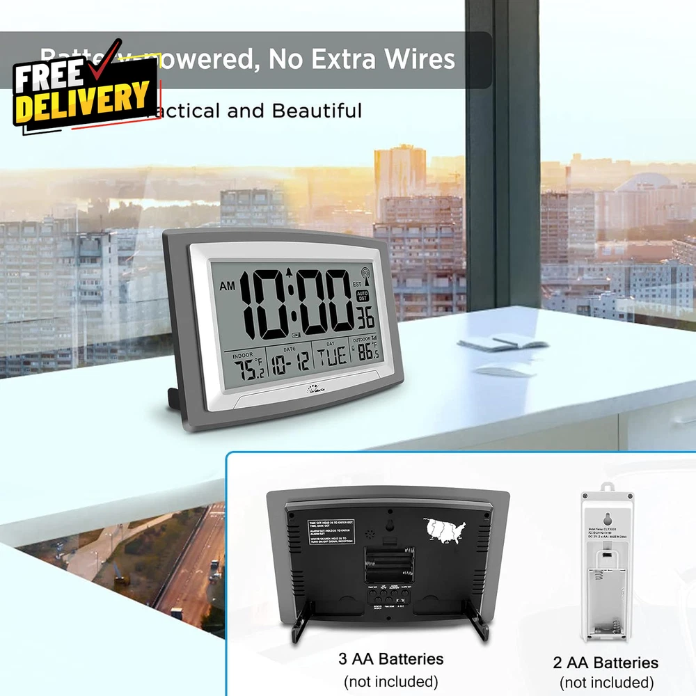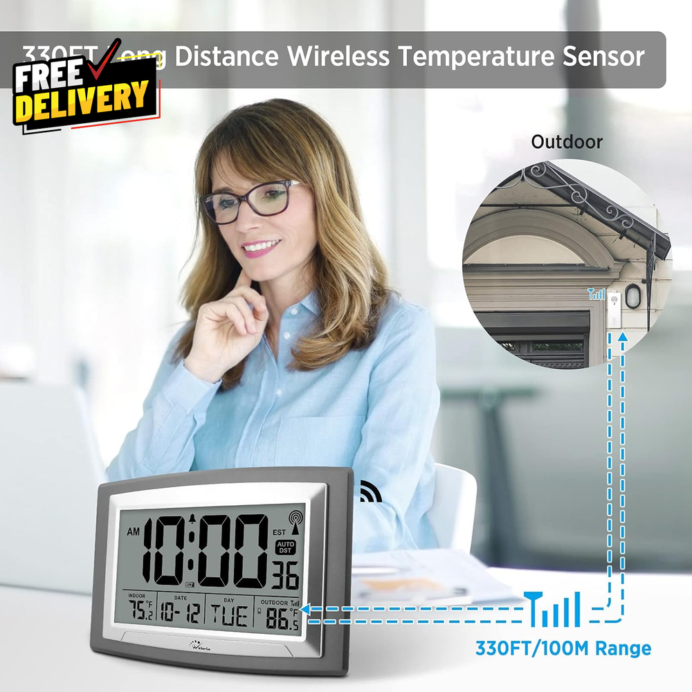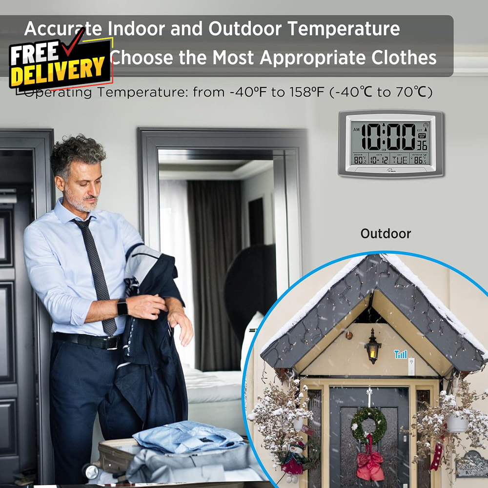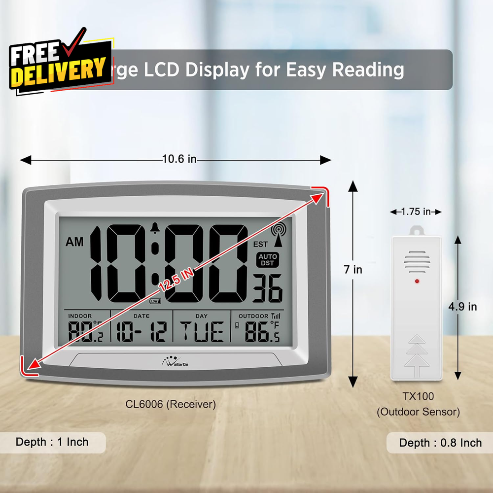 Atomic Clock with Outdoor and Indoor Temperature 12.5 Inch Self-Setting Digital