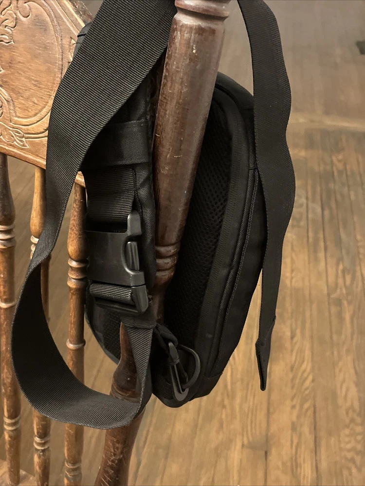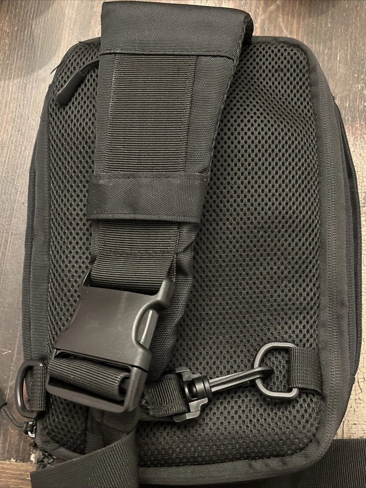 Bag in like-new condition. Small chip on the bottom of metal on front. Very clean. See photos. All zippers work smoothly. No dirt to be found.