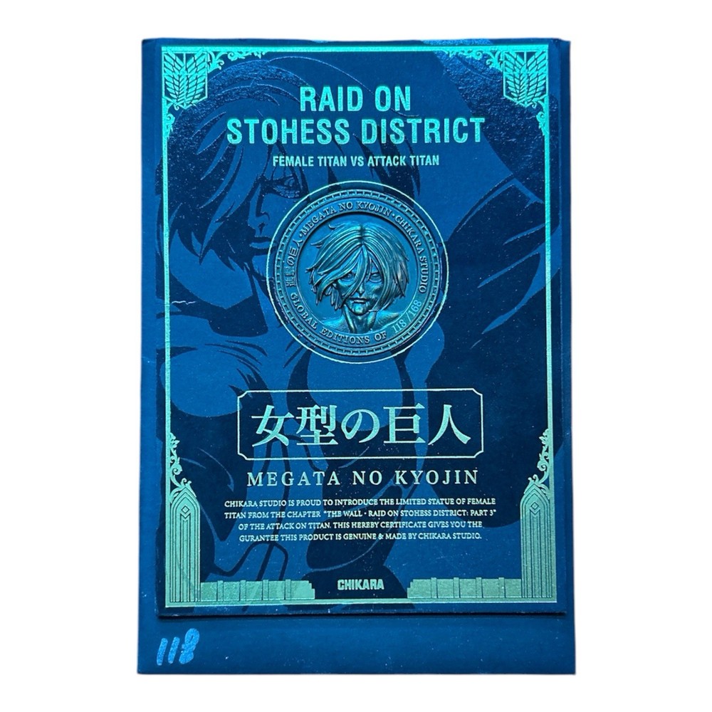 Here I am selling my CHIKARA Studio AOT Resin statue figure. I unfortunately will not have the space to be able to display it in the future. There is a small breakage in Annie’s foot which I already repaired quite well. There is an alternative leg switch out that doesn’t have ice. Please keep in my mind that this listing is from a US seller and is currently being displayed in an American home. Shipping will be cheap and quick, and will NOT be dropshipped to unlike other ebay sellers from China.