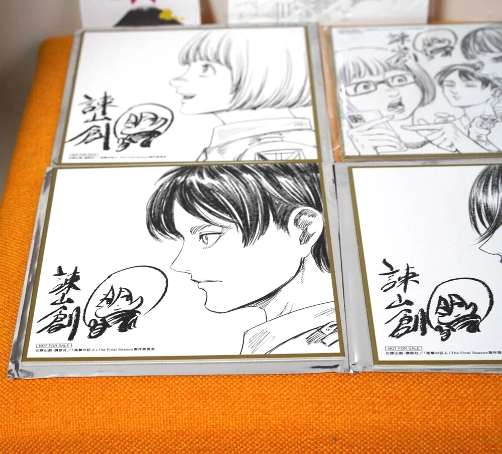 This set is a must-have for AOT fans! The shikishi boards and cards feature stunning artwork, capturing the essence of the final movie. The condition is excellent—just a tiny bend on one corner, barely noticeable. Shipping was fast and secure with tracking, so no worries there. Perfect addition to any collection!