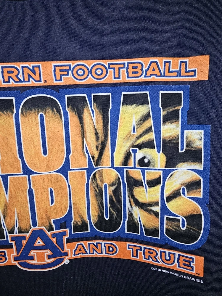 Show your love for the Auburn Tigers with this officially licensed Delta football T-shirt. Featuring the team's medium-sized logo in blue, this shirt is perfect for any fan. Made in Honduras, this shirt is available in size M and is perfect for men who want to show their support for the NCAA Championship team. Whether you're going to the game or just want to show off your team spirit, this shirt is perfect for you. The shirt is made of high-quality materials and is designed to last. Get yours today and show your love for the Auburn Tigers!