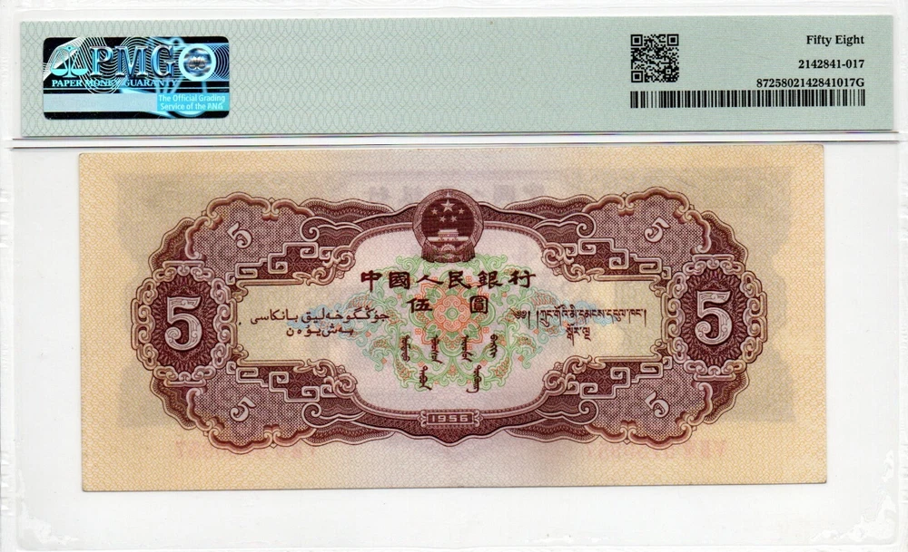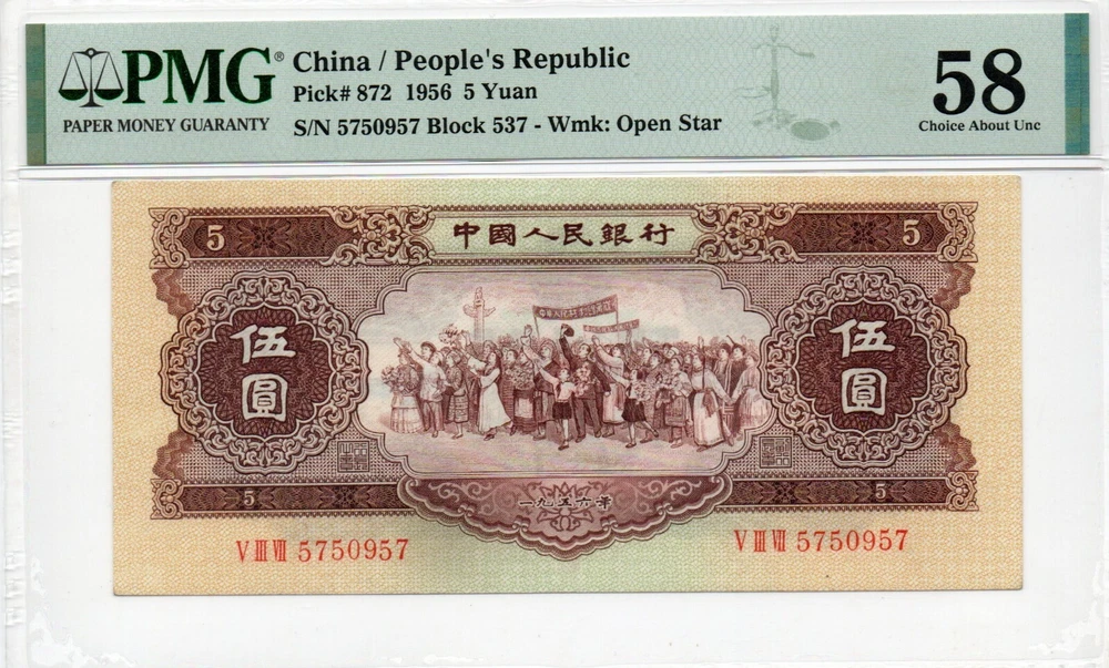 Type: Banknotes Circulated/Uncirculated: Uncirculated Country: China Year: 1956 Grade: 50 Country/Region of Manufacture: China Grade Designation: PMG Star Certification: PMG