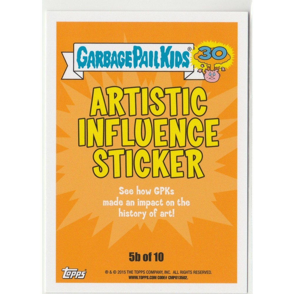 Audacious Auguste #5b Rodin Garbage Pail Kids GPK 2015 30th Anniversary Series Audacious Auguste #5b of 10 Topps Garbage Pail Kids GPK 2015 30th Anniversary Series Artistic Influence Sticker subset Auguste Rodin personal stock photos centering of card may vary compared to listed images
