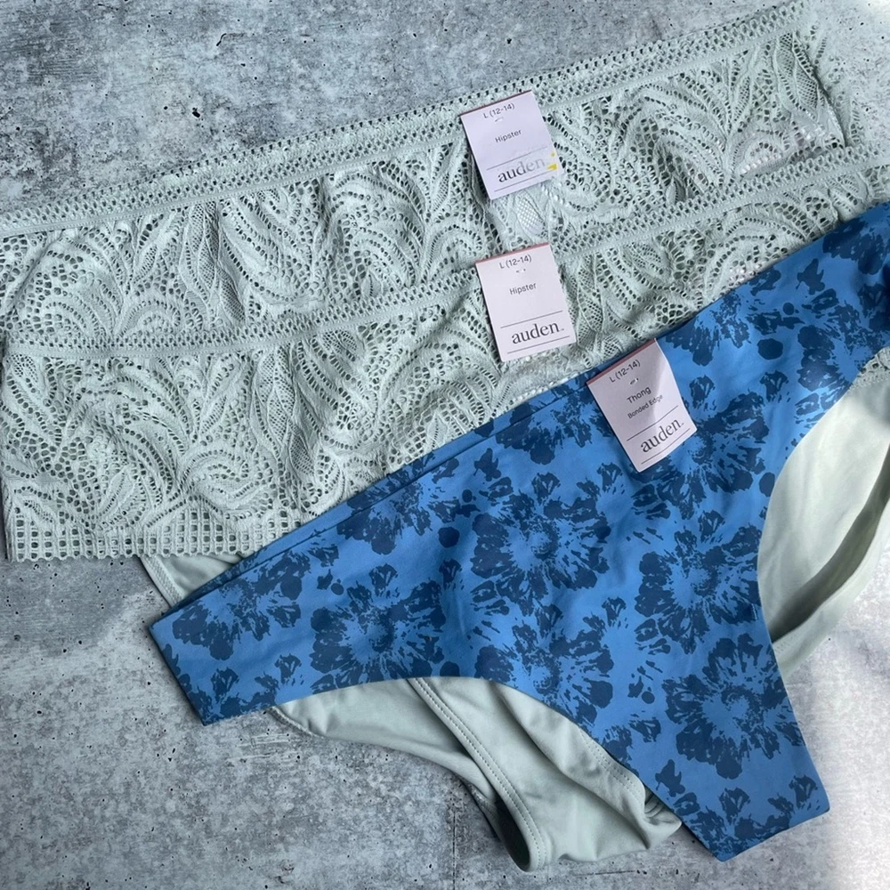 Brand New with Tags Excellent Condition color blue size L (12-14) 2 identical pairs are hipster 1 thong - bonded edge