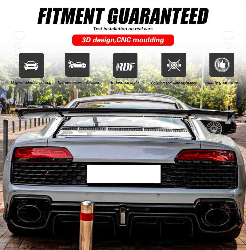 Fitment: Fits for Audi R8 V10 Coupe 2-Door 2019-2024. Specifications: Product Name: Rear Spoiler Material: DRY Carbon Fiber Features: Made of High Quality Lightweight Carbon Fiber. Latest Design GT Wing Spoiler Completed Kit, Improve Handling And Make Tail More Stable in High Speed. Water Transfer Carbon Fiber for Highest Durability and Appearances. Adjustable Angles for Customizable Usages and Efficiencies, Enhances Aerodynamic. Reduces Drag, Increases Fuel Efficiency, Reinforces Downforce, Traction and Stability. Double-sided adhesive paste, Easy to Install. Package included: 1 x Spoiler with screws Carbon Fiber Spoiler FOR AUDI The Rear Trunk Spoiler is one of the simplest mods you can do to the exterior of your car that will give your car that completely different look. Not only are spoilers meant for great looks, they also help with the aero dynamics of the car by lowering drag, or helping to put more downforce on the car making sure that the wheels stay grounded for maximum traction. Fitment: Fits for Audi R8 V10 Coupe 2-Door 2019-2024. Specifications: Product Name: Rear Spoiler Material: DRY Carbon Fiber Features: Made of High Quality Lightweight Carbon Fiber. Latest Design GT Wing Spoiler Completed Kit, Improve Handling And Make Tail More Stable in High Speed. Water Transfer Carbon Fiber for Highest Durability and Appearances. Adjustable Angles for Customizable Usages and Efficiencies, Enhances Aerodynamic. Reduces Drag, Increases Fuel Efficiency, Reinforces Downforce, Traction and Stability. Double-sided adhesive paste, Easy to Install. Package included: 1 x Spoiler with screws Delivery details Payment and TAX Warranty Policy Return Policy Contact us Delivery details NOTE: The shipping fee is only for the mainland of each country, it does not include the overseas territories, such as Virgin Islands (U.S.) , Puerto Rico, Hawaii , French Reunion Island, etc. But on ebay, when buyers from Puerto Rico and overseas territories , the shipping fee is equal to United States, it is NOT correct,. please contact us for correct shipping fee, or we will cancel the order. Sorry for the inconvenience, and thanks for your cooperation. 1. Item will be shipped in 10 days, most within 2 days.usually it takes 7-30 days in transit to most countries. 2. If you want to upgrade the shipping, please contact us before making payment, we will revise the shipping fee. 3. We will ship according to your Ebay address. Please make sure it is correct and include phone number for delivery. If you have any questions , please contact us, we would do our best to serve you solve the problem. Payment and TAX 1.We accept Multiple Payment Methods Available: Credit Card, Debit Card, Gift Card, Apple Pay, Goggle Pay, PayPal and PayPal Cred. 2.Please leave note for your special request (e.g. Colors or Size) in ebay note when you pay the order. 3.Your must complete the payment within 7 days or Ebay will automatically open unpaid item case For US Buyer:The invoice value of each item is less than 800USD ,so you no need to pay any tariff . NON-US Buyer Note: Most countries are tax free based on our invoices, if tax is required, which will be buyer's responsibility. Warranty Policy We Warranty Our Product Within the Limited Warranty Policy Specified on Ebay. Please Email us if ou have any question regarding the warranty policy on a specific item. Most of the items are Aftermarket Parts and they are intended for off-road usage only, therefore no installation instruction will be included, Professional installation are Highly Recommended. We are not responsible for any damages to the item or the vehicle that occur during the installation of the item.Also, Please Make Sure Proper Installation is Performed as we are not responsible for item being missing or flew off after the installation. if you don't think the item can stay on the car properly, please do not attempt to drive the car with it and please check with professional shops/mechanics or contact us for assistance. Return Policy We Accept Returns Within the Return Period On Ebay. Return Authorization/Return Approval is Required For Every Return. So If you Wish to Make a Return On Your Purchase. Please Contact us Before You Send The item back For any damages occured to the item upon arrival, Please notify us within 5 days of the delivery so we can take proper action to fix the issue. So Please Kindly inspect and check the item condition upon arrival.For Any other Return Inquries, You can contact us within the return period to obtain return authorization/return approval. In case of return, the merchandise needs to be returned in original condition with origi- nal packaging in order to be eligible for an exchange or a refund. Items must be not opened in their original package. Any mark of installation, mounting, cutting, scratch or using will not be allowed. Contact us 1.We are trying our best to explain all details of the products here! If you have any question, please feel free to contact us by Ebay message, and We will get back to you within 24-48 hours. 2.Customer satisfaction is our NO.1 priority. If you are not happy with the item that you purchase, please contact us first. We will try our best to solve the problem with you.Please leave us a positive feedback if you receive the item.Please do not leave negative or neutral feedback without any contact.If you haven't received item in 30 days, please contact us and we will arrange refund.We appreciate your business.Happy Bidding & Have a nice day! 3.Working hours: From 8 a.m. to 6 p.m. from Monday to Friday. From 8 a.m. to 12 a.m. on Saturday morning Holiday/Rest time: Saturday afternoon and Sunday