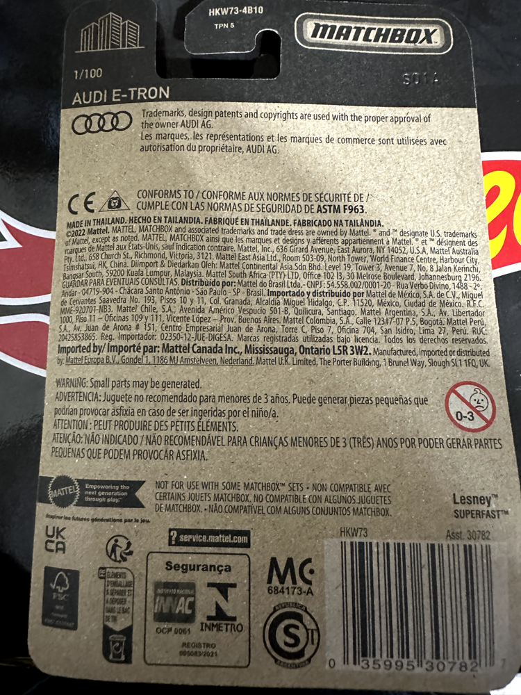 UPC: Does not apply Brand: Matchbox Color: Silver Features: Electric Vehicle Model: Matchbox Audi E-TRON Vehicle Make: Audi Scale: 1:64 gtin13: Does not apply