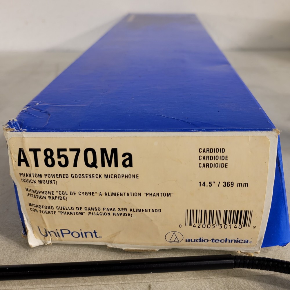 Audio Technica AT857QMa Phantom Powered Gooseneck Microphone Cardioid 14.5" Used see photos Test thoroughly before putting into use. SJ