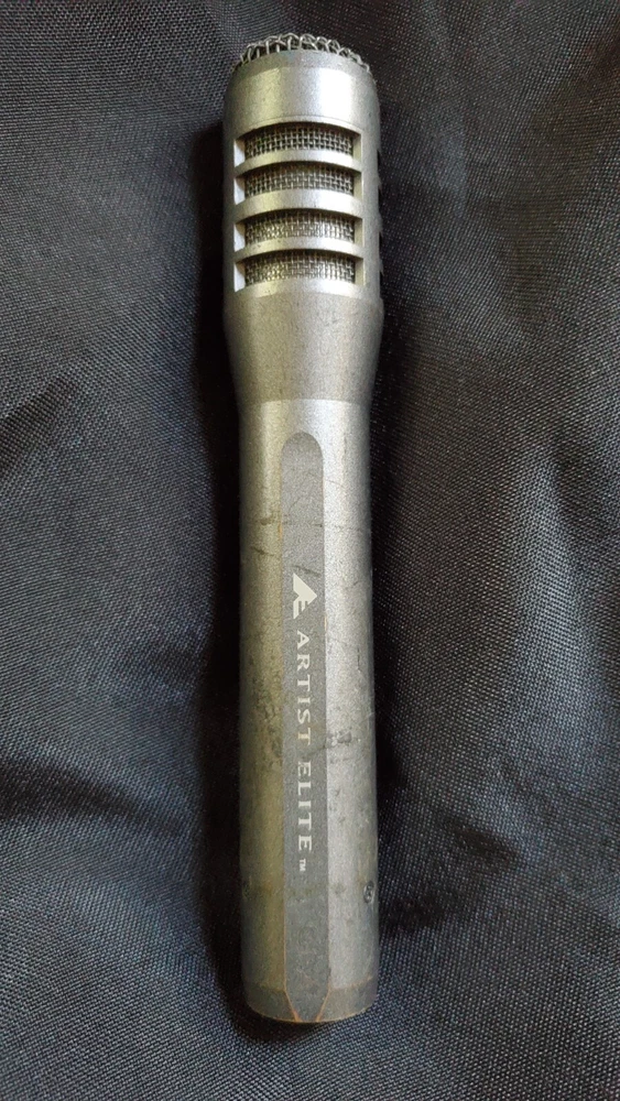 Used Audio-Technica Artist Elite AE5100 large diaphragm cardioid condenser instrument microphone. Great working condition but has been well loved. Please see photos. Smallest large diaphragm condenser you can but and they sound great. Microphone only. Large-diaphragm capsule delivers accurate and natural response Low-profile design permits innovative placement options previously unattainable with a large-diaphragm condenser Cardioid polar pattern reduces pickup of sounds from the sides and rear, improving isolation of desired sound source Robust design for enduring dependability on the road Integral 80 Hz HPF switch and 10 dB pad
