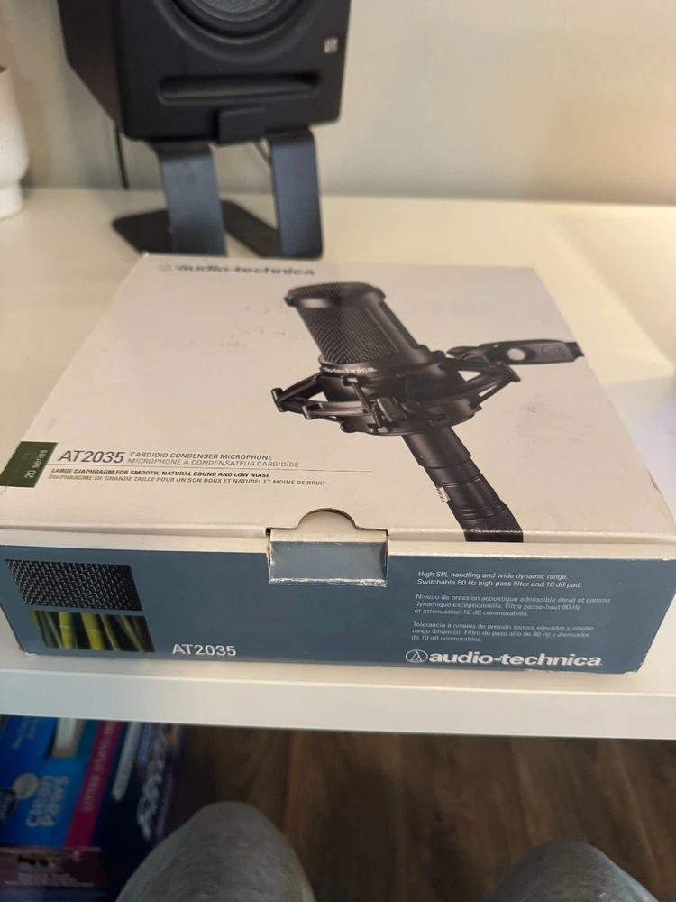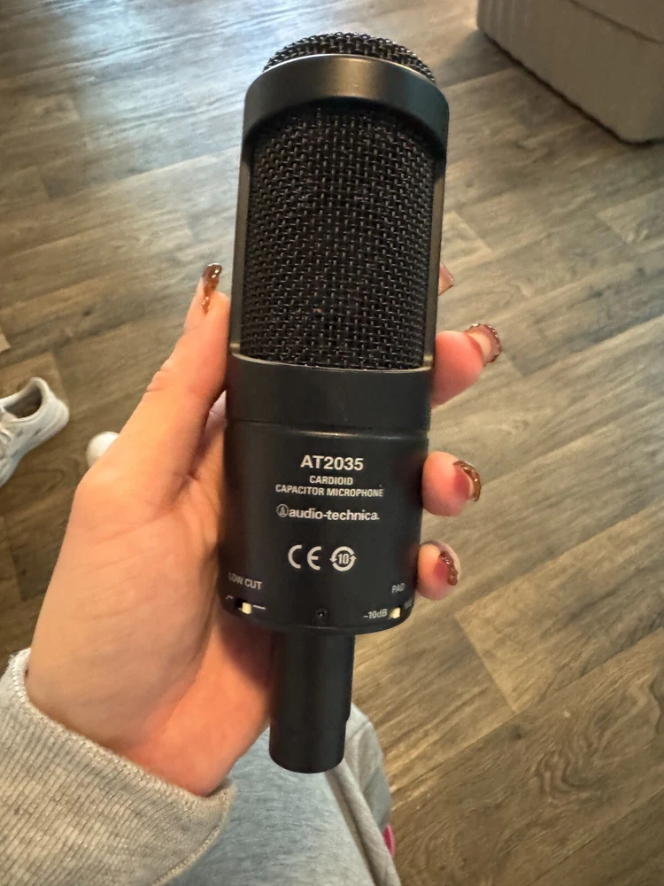 This Audio-Technica AT2035 cardioid condenser microphone is a high-quality, black microphone that is perfect for any professional recording setup. With a maximum SPL of 148 dB and XLR 3 pin connectivity, this microphone is designed to handle any recording task with ease. The medium diaphragm size and cardioid polar pattern make it a versatile choice for any musician or podcaster.Whether you're a professional musician or just starting out, the Audio-Technica AT2035 is an excellent choice for recording your music. Its black color, sleek design, and high-quality construction make it a reliable and stylish addition to any recording setup. Used, Tested and works without any issues. Includes extra long balanced XLR 3 pin cable.