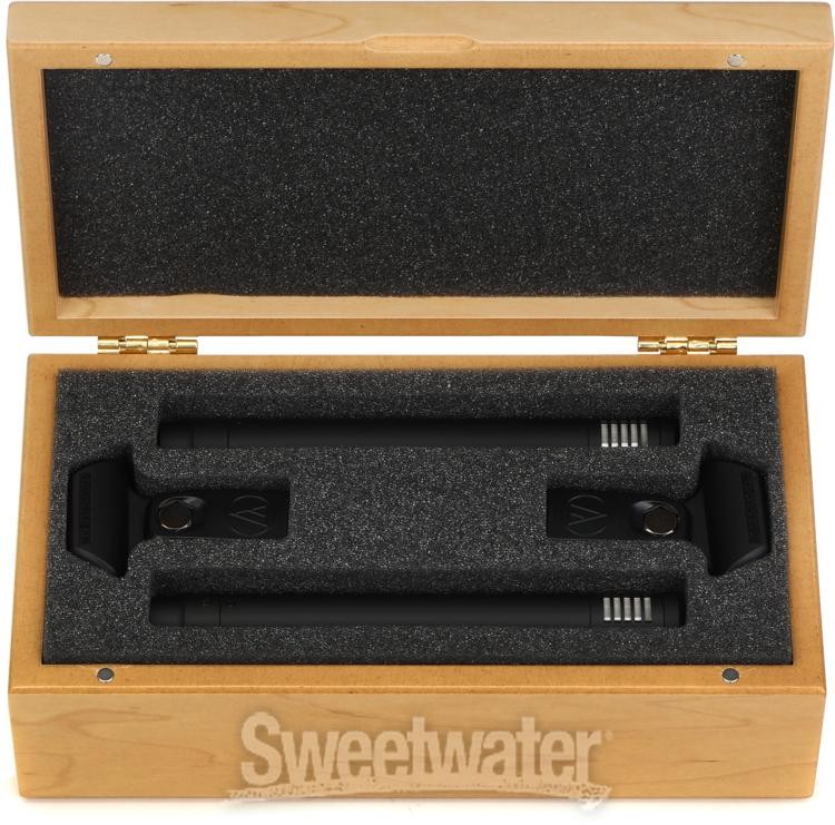 The AT4041 outperforms mics twice its price! Its warm, delicate, sweet sound makes recordings spring to life. It's ideal for drum overheads, acoustic guitar, piano, horns and under snares. The AT4041 Studio Pack offers two AT4041 studio mics with a pair of stand clams, two windscreens, and a protective vinyl storage case. This premium electret condenser microphone is engineered to meet the most critical acoustic requirements of professional recording, broadcast and live sound. The AT4041 cardioid studio condenser microphone features a smooth, extended frequency response with a slight rise in the high-frequency region and a transformerless output for very high SPL-handling capability. A unique combination of audio excellence and moderate cost, the AT4041 is a rugged microphone housed in a case of turned brass with black chrome plating for durability and low reflectivity. The element back plate holds a fixed charge and has been aged to provide energy stabilization. The Sweetwater is an Authorized Audio-Technica Dealer Genuine New Item Sweetwater's 2-year warranty Audio-Technica AT4041SP Studio Microphone Pack Two Small-diaphragm Studio Condenser Microphones with Stand Clamps, Windscreens, and a Vinyl Case The AT4041 outperforms mics twice its price! Its warm, delicate, sweet sound makes recordings spring to life. It's ideal for drum overheads, acoustic guitar, piano, horns and under snares. The AT4041 Studio Pack offers two AT4041 studio mics with a pair of stand clams, two windscreens, and a protective vinyl storage case. This premium electret condenser microphone is engineered to meet the most critical acoustic requirements of professional recording, broadcast and live sound. The AT4041 cardioid studio condenser microphone features a smooth, extended frequency response with a slight rise in the high-frequency region and a transformerless output for very high SPL-handling capability. A unique combination of audio excellence and moderate cost, the AT4041 is a rugged microphone housed in a case of turned brass with black chrome plating for durability and low reflectivity. The element back plate holds a fixed charge and has been aged to provide energy stabilization. The surface of the back plate is precision milled to ensure maximum charge linearity, resulting in a reduction in both frequency response peaks and diaphragm break-up distortion. Audio-Technica AT4041 Studio Pack Features: Recommended for professional recording and critical applications in broadcast Smooth, extended frequency response, high output and very high SPL capability Transformerless design for low self-noise Switchable highpass filter and rugged turned-brass microphone housing Frequency response 20Hz-20kHz 100 ohms impedance Element - fixed-charge, permanently polarized capacitor Polar Pattern - cardioid Dynamic range, typical - 121dB, 1kHz at max SPL Signal-to-noise ratio, typical - 70dB Two AT4041 cardioid condenser microphones Two AT8405a stand clamps Two AT8159 windscreens Protective vinyl case Requires +48V phantom power Specification Detail Microphone Type Condenser Polar Pattern Cardioid Frequency Response 20Hz-20kHz Max SPL 145dB Output Impedance 100 ohms Signal to Noise Ratio 70dB Low Cut Filter 80Hz (-12dB/octave) Connector XLR Weight 0.26 lbs. RETURN INFORMATION We want you to be completely happy with your purchase from Sweetwater. If you are not satisfied with your product, you may return it for a refund of the purchase price within 30 days. If your purchase was eligible for Free Shipping, the shipping cost will be deducted from your credit or refund. Returns must be in the complete and original packaging with all accessories and complete documentation (Owner's Manual, warranty card, quick start guides, etc.), show no signs of wear or use, and include a Return Authorization number or be subject to a restocking fee.
