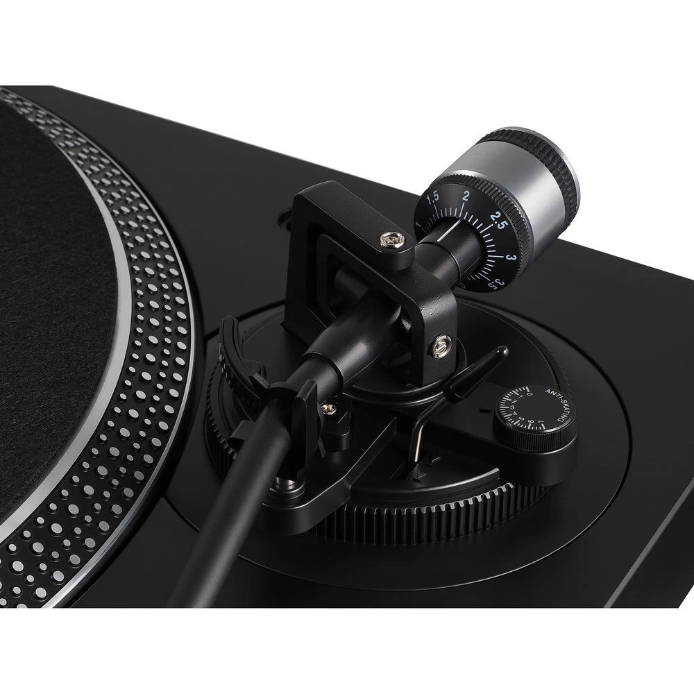 Since the first cartridges rolled off the Tokyo assembly line in 1962, Audio Technica has been synonymous with high-quality turntables. The AT-LP120XBT USB is built on that legacy. Incorporating AT's standard attention to detail with today's technology, the AT-LP120XBT USB is designed to ensure you fully experience your vinyl's magic. A fully manual direct-drive turntable, the AT-LP120XBT USB plays 33-1/3, 45, and 78 RPM records so you can enjoy your entire collection. And while you're enjoying it, you can also archive it, using the USB output that allows you to record directly to your personal computer. You can also listen on wireless speakers or headphones where you want thanks to integrated Bluetooth® wireless connectivity. Outfitted with the high-performance AT-VM95E cartridge at the end of an S-shaped tonearm with adjustable tracking force, the AT-LP120XBT USB will deliver the listening experience your collection is worthy of. Audio-Technica AT-LP120XBT-USB-BK Includes: Audio-Technica Consumer AT-LP120XBT-USB Stereo Turntable with USB and Bluetooth (Black) 45 rpm Adapter USB Cable Stereo RCA Cable with Ground Wire Hinged Dust Cover Felt Mat Counterweight Plug-Type Stylus Target Light AC Adapter Limited 1-Year Warranty Audio-Technica AT-LP120XBT-USB-BK Features: Fully manual operation with 33 1/3, 45, and 78 rpm speeds Connects wirelessly to your speakers and other devices equipped with Bluetooth wireless technology, or to wired systems via the included stereo RCA cable aptX codec compatibility Anti-resonance, die-cast aluminum platter with felt mat Dual magnet phono cartridge with elliptical stylus Cartridge is compatible with nearly any VM95 series replacement stylus S-shaped tonearm with hydraulically damped lift control and lockable rest Switchable built-in preamplifier for phono- or line-level output Stroboscopic platter with speed indicator Variable pitch control with quartz speed lock Removable plug-type target light for easier queuing in low light Damped base construction for reduced low-frequency feedback coloration AC adapter handles AC/DC conversion outside the chassis, helping to reduce noise in the signal chain Convert your vinyl records to digital audio files with your recording software Audio-Technica AT-LP120XBT-USB-BK Specifications: Motor: DC Servo Drive Method: Direct Drive Speeds: 33 1/3, 45, 78 rpm Tonearm Type: S-Shaped Effective Arm Length: 9.075" / 230.5 mm Overhang: 0.63" / 16 mm Tracking Error Angle Torque: Starting: >1 kgf.cm Brake System: Electronic Cartridge Weight: Applicable: 3.5 to 8.5 g Anti-Skating Range: 0 to 4 g Signal to Noise Ratio: >50 dB Wow and Flutter Headshell: Model: AT-HS6 Mount: 1/2" Mount Cartridge: AT-VM95E Stylus: 0.3 x 0.7 Mil Elliptical Output: 1 x Stereo RCA Phono / Line Pair (Switchable Preamplifier) 1 x USB 1.1 Output Level: Phono: 4 mV Nominal at 1 kHz, 5 cm/sec Line: 240 mV Nominal at 1 kHz, 5 cm/sec D/A Converter: 16-Bit / 44.1 kHz or 48 kHz, USB Selectable Bluetooth: Version: 5.0 Output: Bluetooth Specification Power Class 2 Range: Up to 30' / 10 m with Line of Sight Profile: A2DP Codecs: SBC, aptX Gain: Phono Preamp: 36 dB Nominal, RIAA Equalized Turntable Platter: Die-Cast Aluminum System Requirements: Windows 7 or Later or Mac OS X or Later Available USB Port (USB 1.1 or Later) Power Requirements: 120 VAC, 60 Hz Power Consumption: 3 W Dimensions (W x H x D): 17.8" x 5.6" x 13.9" Weight: 17.6 lb / 8 kg without Dust Cover