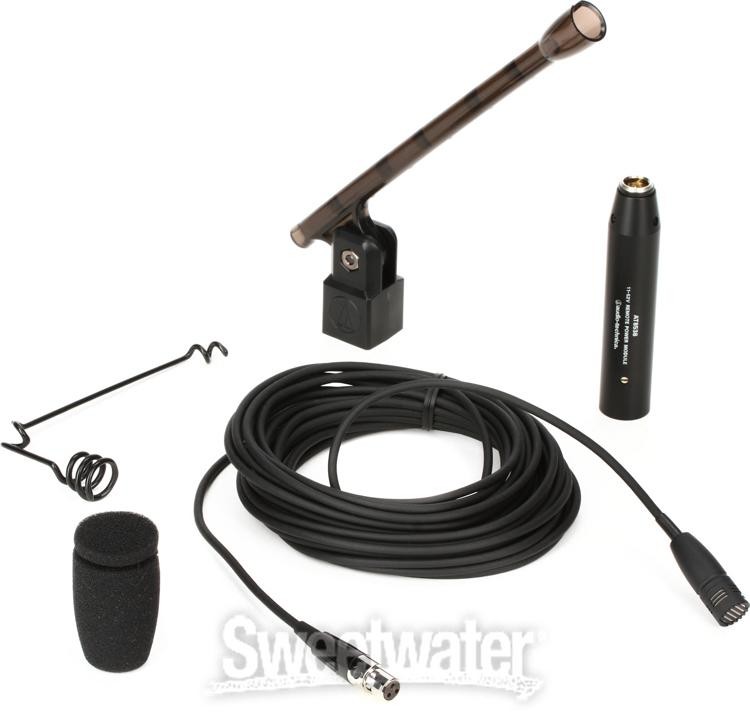 The Audio-Technica U853R hanging condenser microphone gives you an unobtrusive, incredibly clear-sounding way to capture overhead audio from choral, orchestral, and house of worship applications. The U853R features a UniGuard design that makes it practically immune to RF interference. This phantom-powered mic features a cardioid pickup pattern, allowing it to capture sound accurately while rejecting outside noise. It also includes an 80Hz low-cut filter, as well as a power module. Capture sound with incredible clarity and class with the U853R. Audio-Technica U853R Hanging Cardioid Condenser Microphone Features: Designed for suspension over choirs, instrumental groups and theater stages Superior off-axis rejection for maximum gain before feedback UniGuard RFI-shielding technology offers outstanding rejection of radio frequency interference (RFI) UniSteep filter provides a steep low-frequency attenuation to improve sound pickup without affecting voice quality Accepts interchangeable elements to permit angle of acceptance from 90 degrees to 360 degrees Low-profile design with low-reflectance finish Sweetwater is an Authorized Audio-Technica Dealer Genuine New Item Sweetwater's 2-year warranty Audio-Technica U853R Cardioid Condenser Hanging Microphone - Black Hanging Cardioid Condenser Microphone with RFI Shielding, Low-cut Filter, and Power Module - Black The Audio-Technica U853R hanging condenser microphone gives you an unobtrusive, incredibly clear-sounding way to capture overhead audio from choral, orchestral, and house of worship applications. The U853R features a UniGuard design that makes it practically immune to RF interference. This phantom-powered mic features a cardioid pickup pattern, allowing it to capture sound accurately while rejecting outside noise. It also includes an 80Hz low-cut filter, as well as a power module. Capture sound with incredible clarity and class with the U853R. Audio-Technica U853R Hanging Cardioid Condenser Microphone Features: Designed for suspension over choirs, instrumental groups and theater stages Superior off-axis rejection for maximum gain before feedback UniGuard RFI-shielding technology offers outstanding rejection of radio frequency interference (RFI) UniSteep filter provides a steep low-frequency attenuation to improve sound pickup without affecting voice quality Accepts interchangeable elements to permit angle of acceptance from 90 degrees to 360 degrees Low-profile design with low-reflectance finish for minimum visibility The Audio-Technica U853R hanging condenser microphone is a low-profile, accurate, and effective sound reinforcement tool! Specification Detail Microphone Type Condenser Polar Pattern Cardioid Frequency Response 30Hz-20kHz Max SPL 139dB SPL (1kHz at 1% THD) Output Impedance 250 ohms Signal to Noise Ratio 70dB, 1kHz at 1 Pa Color Black Cable Length 25 ft. Connector XLR Power Source 48V phantom power Weight .03 lb. (Mic), .3 lb. (Power Module) Included accessories AT8153 foam windscreen, AT8451 steel hanger, AT8538 power module, AT8438 stand mount RETURN INFORMATION We want you to be completely happy with your purchase from Sweetwater. If you are not satisfied with your product, you may return it for a refund of the purchase price within 30 days. If your purchase was eligible for Free Shipping, the shipping cost will be deducted from your credit or refund. Returns must be in the complete and original packaging with all accessories and complete documentation (Owner's Manual, warranty card, quick start guides, etc.), show no signs of wear or use, and include a Return Authorization number or be subject to a restocking fee.