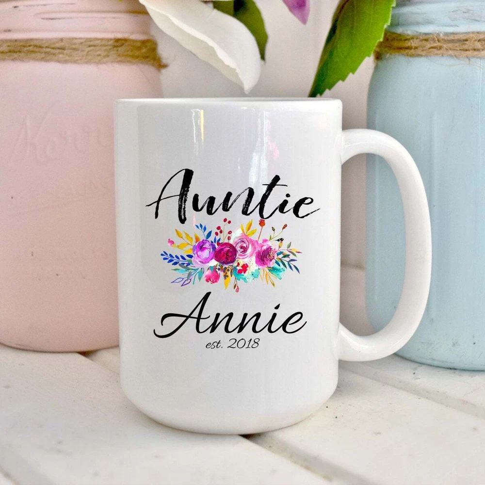 Auntie Mug Aunt Mug Aunt Gift Coffee Mug Gift For Sister Aunt To Be New Aunt Product Details.. This high quality 11oz. ceramic white mug has a premium hard coat that provides crisp and vibrant color reproduction sure to last for years. Perfect for all hot & cold beverages. The highest quality printing possible is used. It will never fade no matter how many times you wash it. Material: 100% Ceramic. Print both sides. Dishwasher and Microwave Safe. High Gloss + Premium White Finish. Printed in the U.S.A. Personalized & Custom. We support personalized and custom mug to add custom, when placing an order, you can add notes to the "order note" in shipping address section. Also you can contact us directly via message. Shipping Info. Ready to ship in 1 to 2 business days, All products are made-to-order and proudly printed in the United States. Shipped by USPS and DHL, You will receive your order in 5-7 days. Replace & Refund. All products are defective during shipping broken, chipped will be replaced free of charge. You are not satisfied with the product, we will refund 100% money to you. If any other issues arise, please do not hesitate to message, we would be more than happy to assist you.