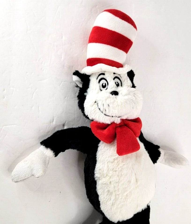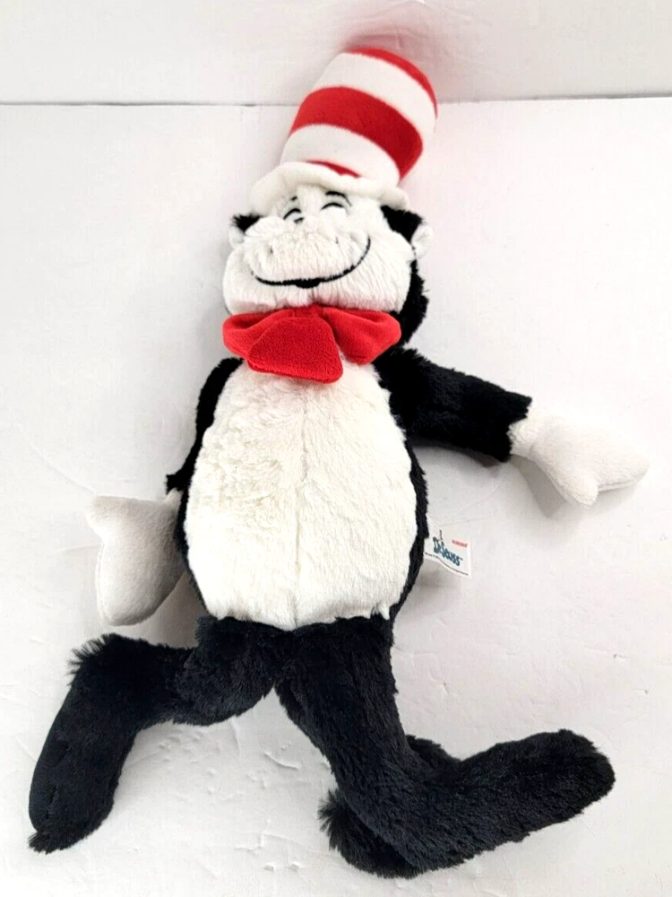 Bring home the lovable and mischievous cat from the beloved Dr. Seuss story with this Aurora soft floppy plush. Standing at 17 inches tall, this medium-sized cat is perfect for snuggling up with. The black, white, and red color scheme is instantly recognizable, and the embroidered features make him look just like the character from the classic children's book. This 2018 edition of the Cat in the Hat plush is a must-have for any Dr. Seuss fan or collector. With its high-quality construction and attention to detail, it's sure to be a cherished addition to your stuffed animal collection.