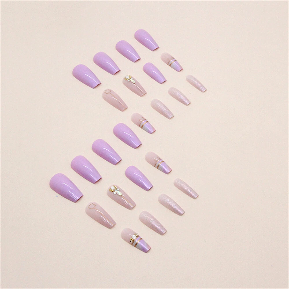 Type : False nails/Press on nails/Stick on nails/Nails Tips 100% New and high quality Color: Multicolored Material: ABS Plastic Package Includ ed: 2 4pcs False Nails with glue Feature: Full cover/Glue Included/Pre-designed/Durable/Detachable 1.This false nails are easy to file, paint and apply. It looks natural and nice holding the color without separating or streaking, making your tips magical and stylish. 2.Easy to use according to your option to wear them long or clip them short, easy to trim and file them to any length and shape you like. Mutiple application: The false nails are great for learners at all stages,suitable for nail salons and diy nail art at home,easy to remove,which are wonderful gifts for your wife,girlfriend,mother or sisters,as well as they are great fro parties,weddings,costume ball,Halloween,Christmas,etc. How to apply? 1. Trim the sides and cuticle area for an accurate fit. 2. Select the correct size of fake nails for each finger. 3. Apply our glue sticker on your nails. 4. Put on the fake nails. 5. Press on them for 10 seconds. 6. Art manicure finished. How to remove? 1. Soak in warm water for about 2 minutes and adhesive tabs can be removed easier. 2.Gently peel off the fake nails from the sides. Note: The nail piece is measured by hand in kind, there may be a little gap, hope for understanding! If there is any concern,please contact us again anytime.