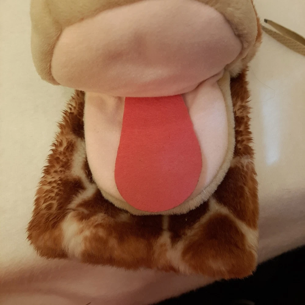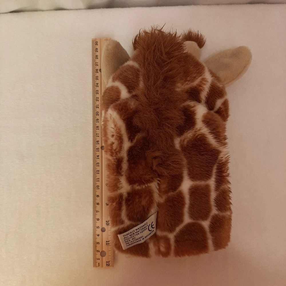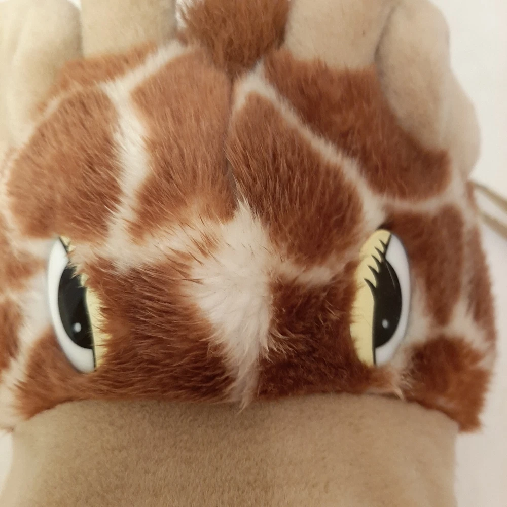 Aurora World Giraffe Head Plush Hand Puppet Jungle Zoo Animal 10 Inch DAMAGED In good pre-owned condition may show signs of wear from use/handling/storage/display. Please view all pics for condition/details/flaws/issues. SOLD AS IS In okay pre-owned condition is missing one nose piece please see photo 1 as well as something hard is on some of it leaving cleaning to buyer please see photo 5,8, & 9. otherwise in good condition.